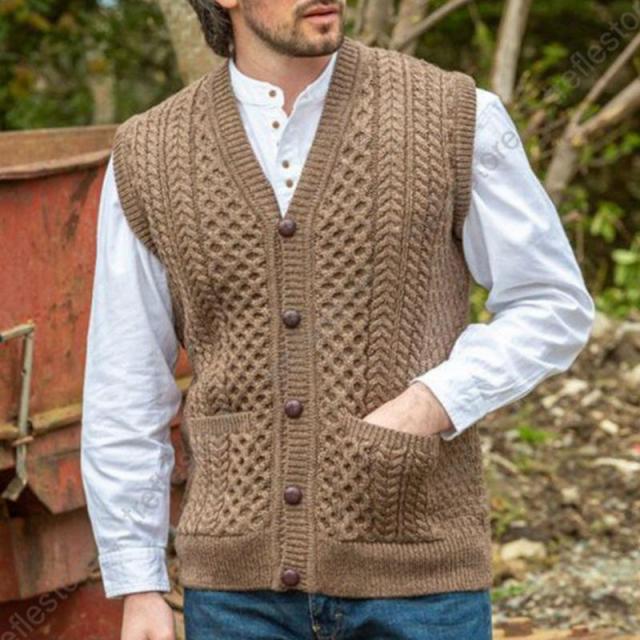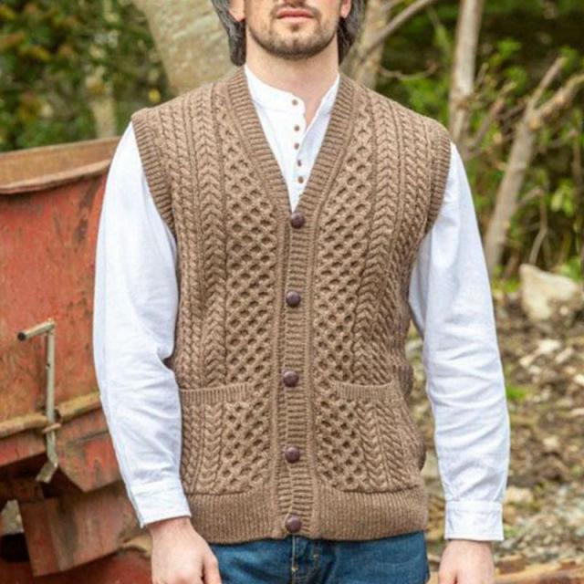 【ポイント5倍!】ニットベスト ジレ メンズ Vネック 前開き ケーブル編み ポケット付き 袖なし コーデ カジュアル ビジネスベスト 通勤 きれいめ カッコイイ トップス 春 秋冬