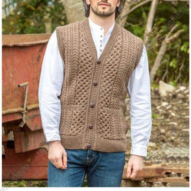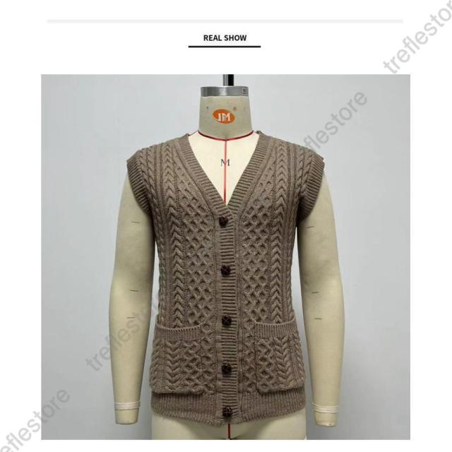 ニットベスト ジレ メンズ Vネック 前開き ケーブル編み ニット 袖なしセーター コーデ カジュアル ビジネスベスト 通勤 きれいめ カッコイイ トップス 春 秋冬