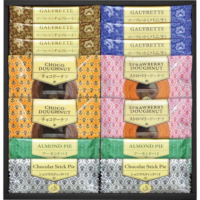 【セット内容】●ゴーフレット チョコ・バニラ×各3 、アーモンドパイ・ショコラスティックパイ×各2、焼きドーナツ チョコ・ストロベリー ×各2