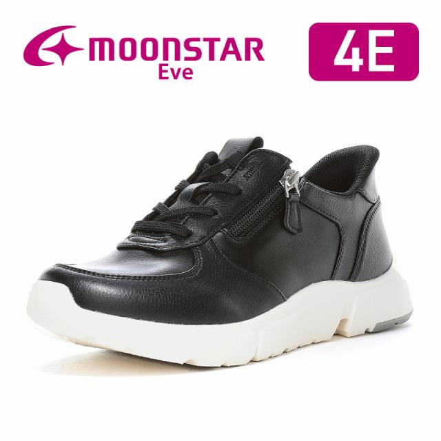 送料無料 ムーンスター イブ レディース スニーカー EVE 334 ブラック らくにすぽっと履ける靴 イージー・ゴー 幅広4E ワイド設計 軽量 ガラス防滑 衝撃吸収 抗菌防臭 靴 シューズ