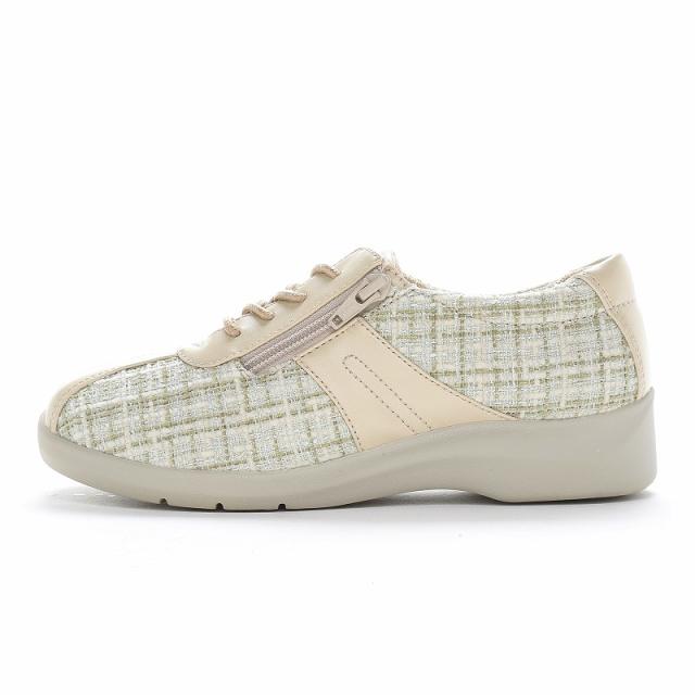 アクティブなミセスの足元をサポートする「ムーンスター イブ」のコンフォートシューズです。ゆったりやわらかな履き心地の「やわらかさNo.1宣言」シリーズです。外側ファスナー付きで、脱ぎ履きがしやすく、軽量性にも優れています。ヒールの高さは3.0cmで、重量は23.0cmで片足約195gの軽量設計です。【ワイド設計】幅広の方に対応した商品です。【やわらか設計】足になじみやすい柔らかな素材を使用しています。【ふわピタ中敷】低反発ウレタンを使用した中敷で、足に柔らかくフィットします。【非対称カウンター】外側よりも内側が長いカウンターを搭載することで踵が内側に倒れるのを防ぎます。【つまずき防止】つまずきにくいアウトソール設計です。【ガラス防滑ソール】ガラス(粒子、繊維)入りゴム配合で防滑性に優れ、氷や濡れた大理石でも快適に歩行ができます。【軽量設計】軽くなるような工夫を施した設計です。