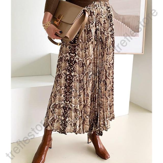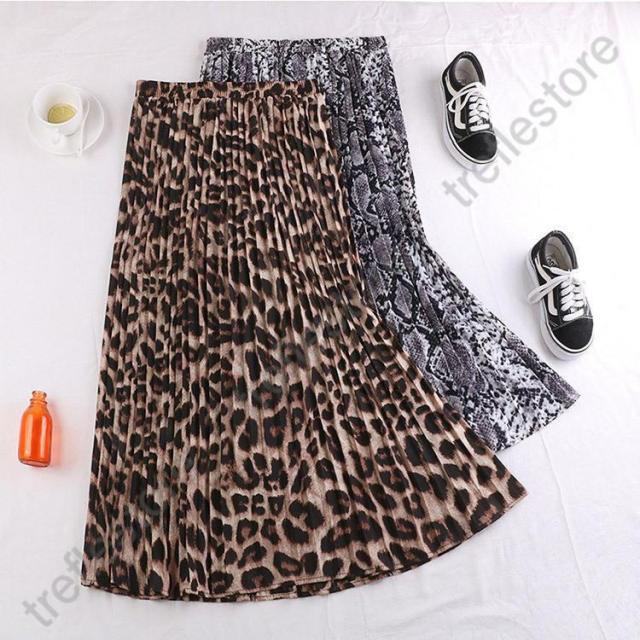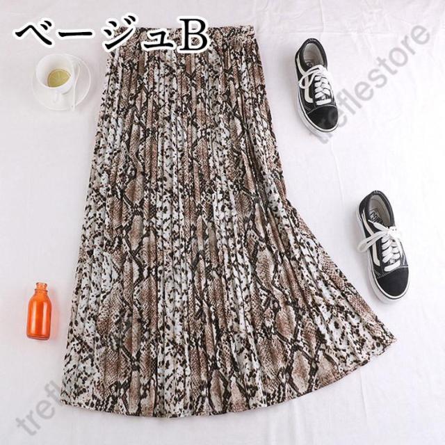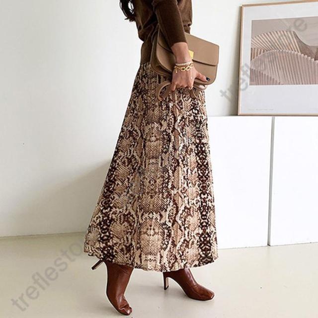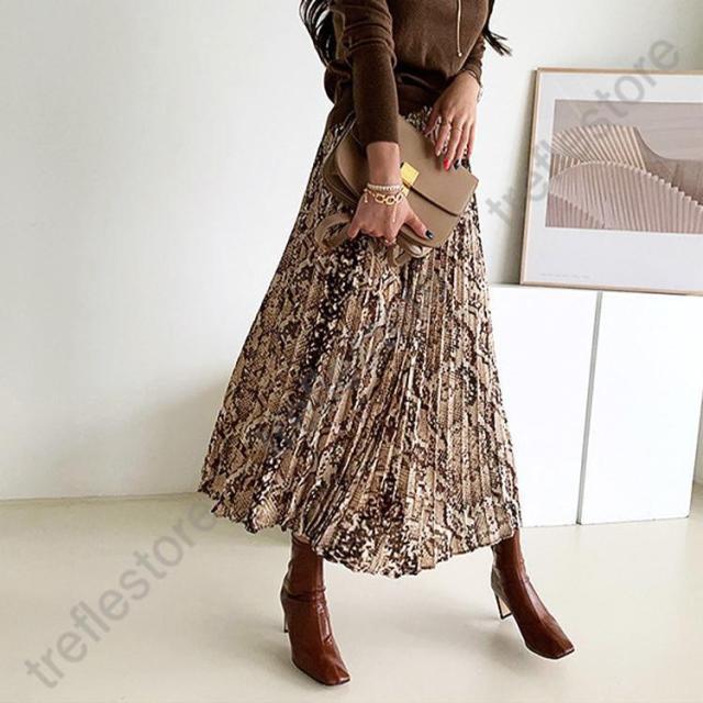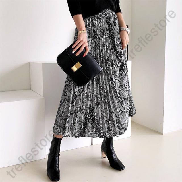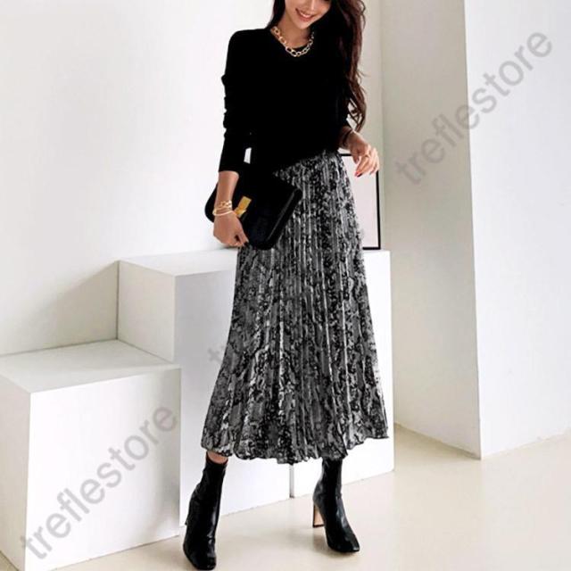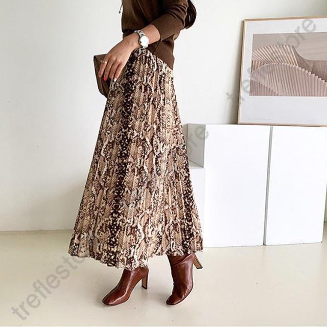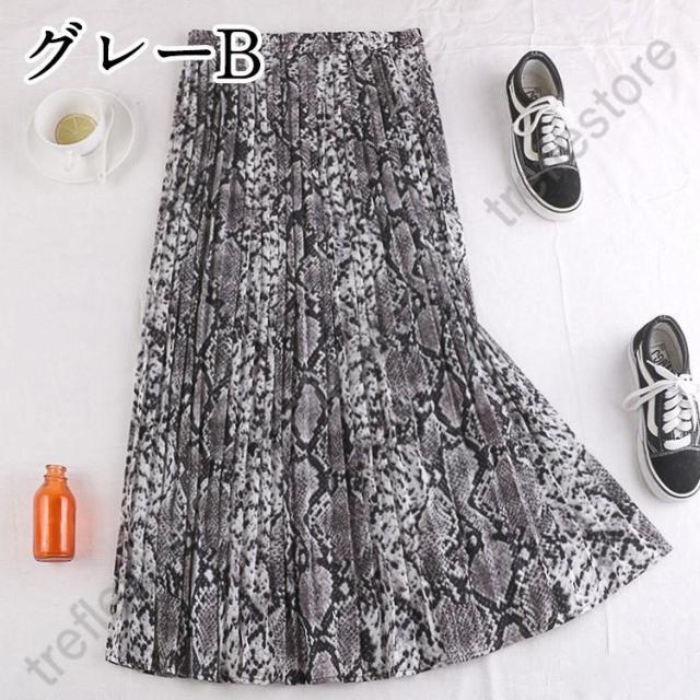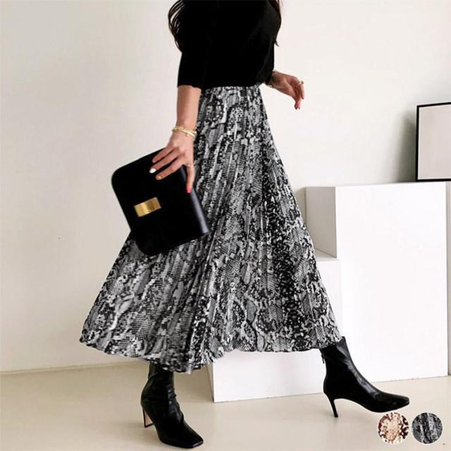 【ポイント5倍!】ロングスカート 柄 秋冬 スカート ロング レディース パイソン柄 ひょう柄 プリーツ 黒 グレー 蛇柄 韓国 メール便