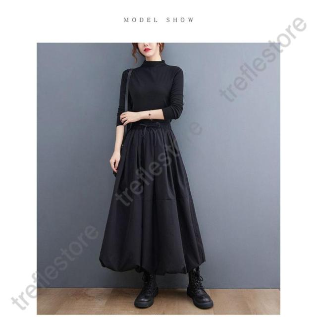 【ポイント5倍!】スカート ロング レディース 黒 大きいサイズ フレアスカート フレア バルーンスカート ボトムス 春 秋 春物 ロングスカート ミモレ丈 シンプル きれいめ 大人