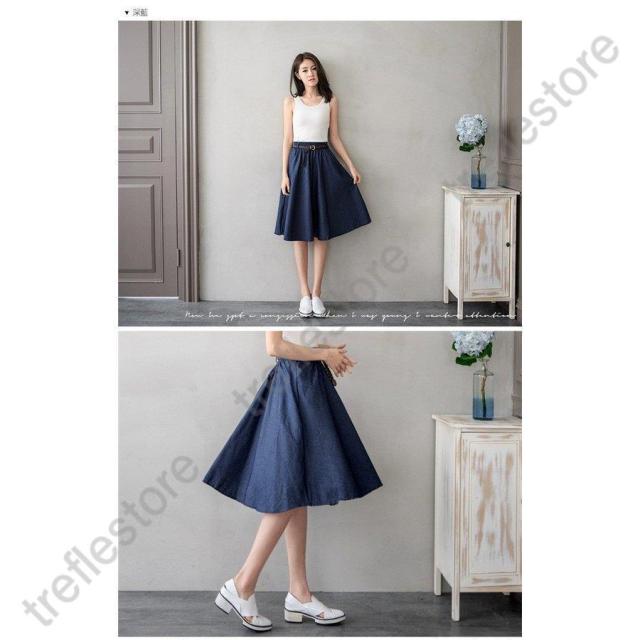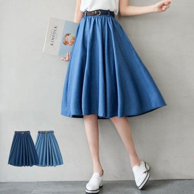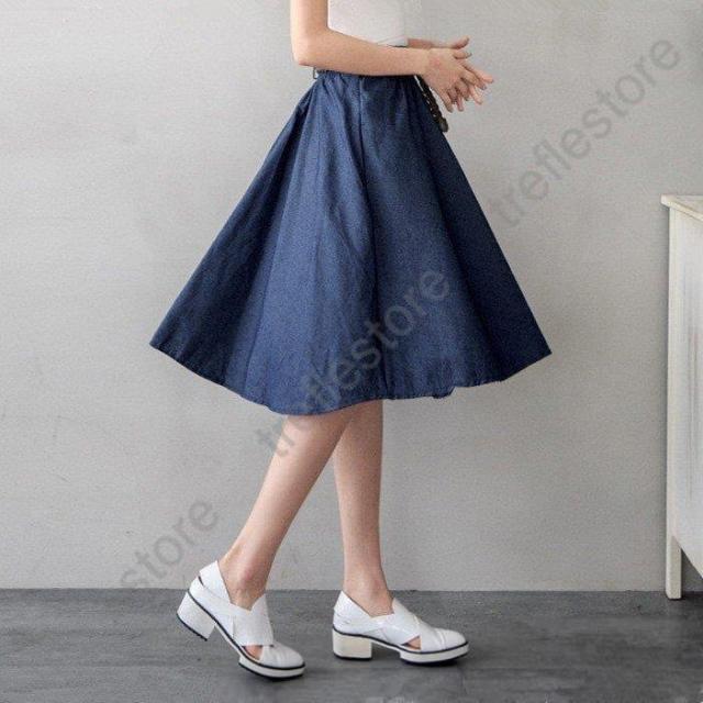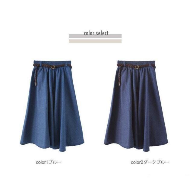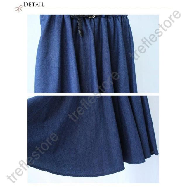 【ポイント5倍!】スカート レディース ボトムス デニムスカート 膝丈 フレアスカート デニム 綿 ウエストゴム aライン 春 夏 40代 50代 コーデ