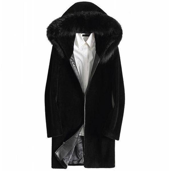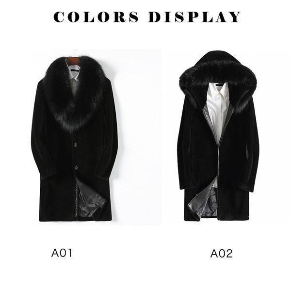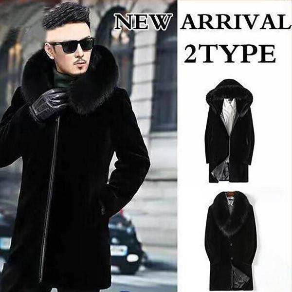 【ポイント5倍!】毛皮コート ファーコート メンズ アウター ロングコート ロング丈 フード付き 防寒 ファー フェイクファー 裏起毛 かっこいい 高級感 厚手 冬服