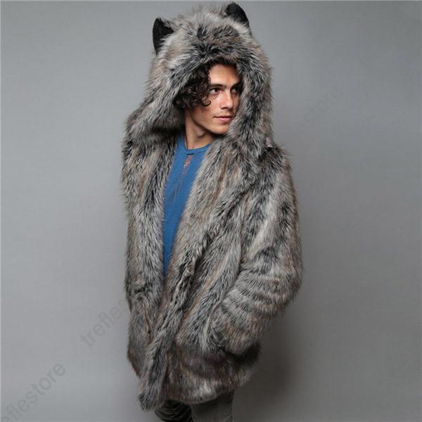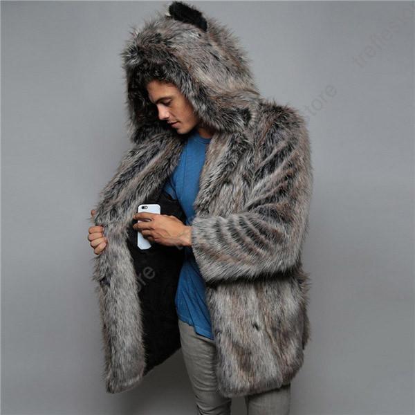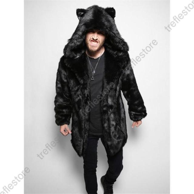 【ポイント5倍!】毛皮コート ファーコート メンズ アウター ロングコート ロング丈 フード付き 防寒 ファー フェイクファー 格好良い かっこいい 高級感 厚手 冬服