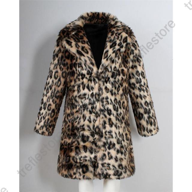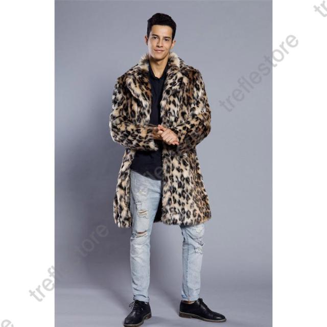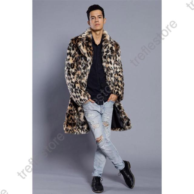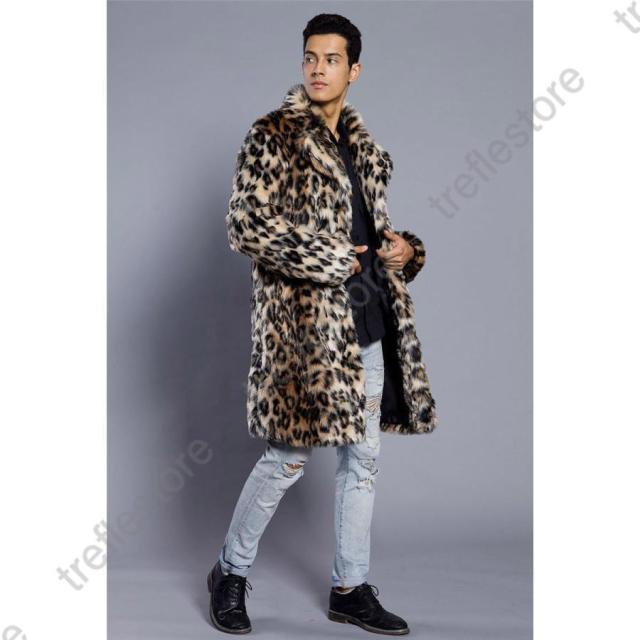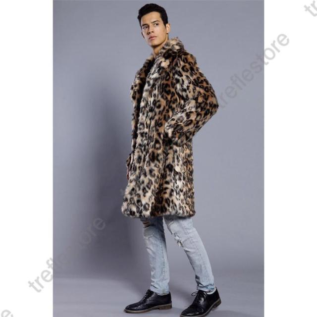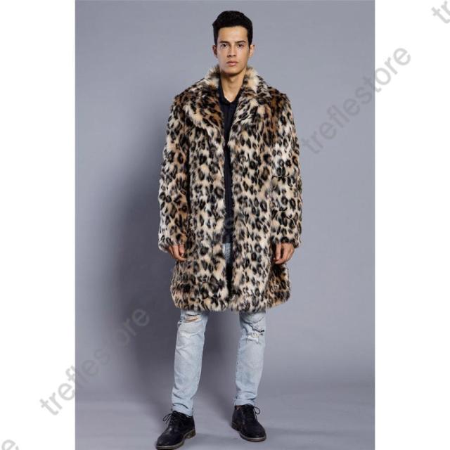 【ポイント5倍!】ファーコート メンズ 毛皮コート ロング丈 ヒョウ柄 ミンク フェイクファー 大きいサイズ お洒落 ゆったり 暖かい 防風 防寒 保温 冬服 新作