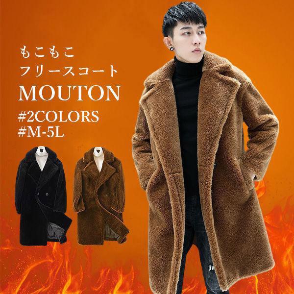 【ポイント5倍!】フリースコート ムートンコート ロングコート メンズ アウター ボアコート ジャケット 防寒着 暖かい 厚手 おしゃれ ブランド クリスマス