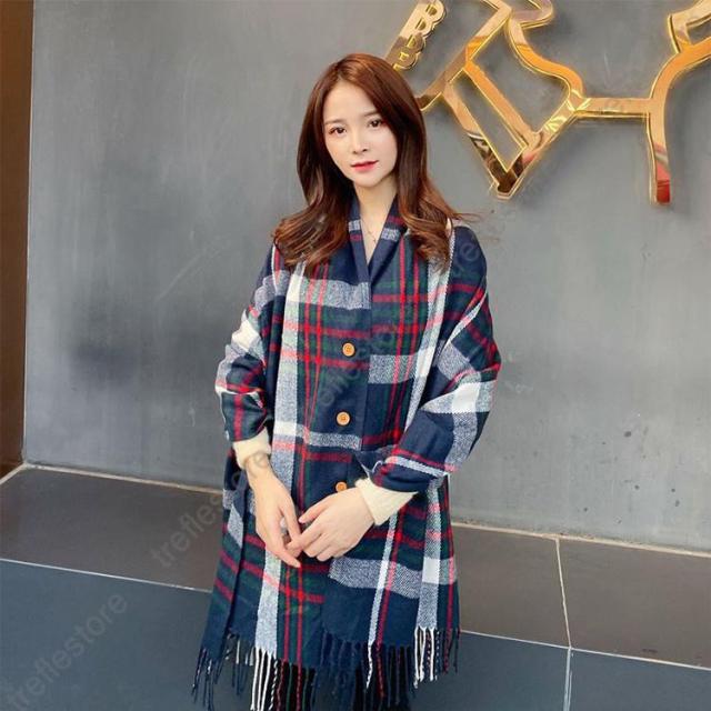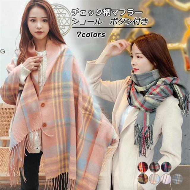 【ポイント5倍!】チェック柄マフラー 着るストール レディース 大判 ボタン付き ショール 羽織り 肩掛け ひざ掛け 通勤 通学 防寒 暖かい 秋冬新作 きれいめ おしゃれ
