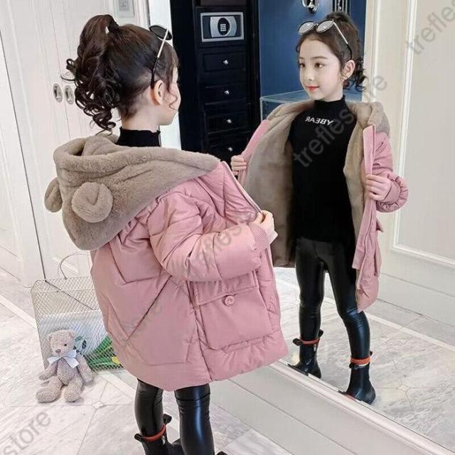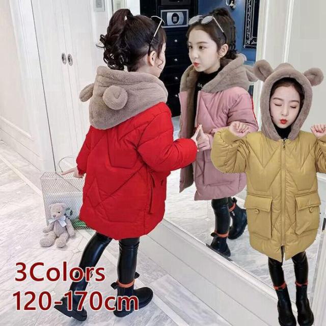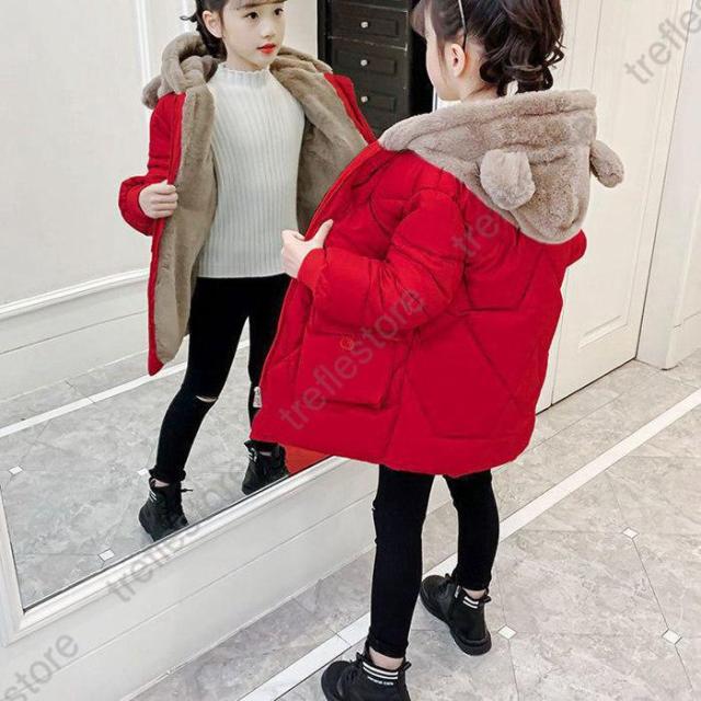 【ポイント5倍!】中綿コート 子供服 中綿ジャケット 女の子 キッズ ロング丈 お嬢様 ロングコート ダウンコート フード付き 耳付き 可愛い 通学 通園 防寒