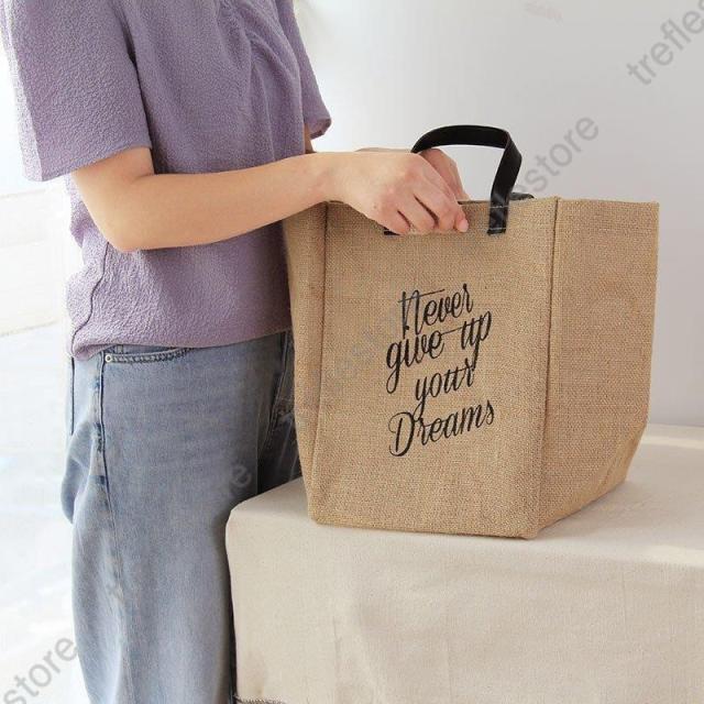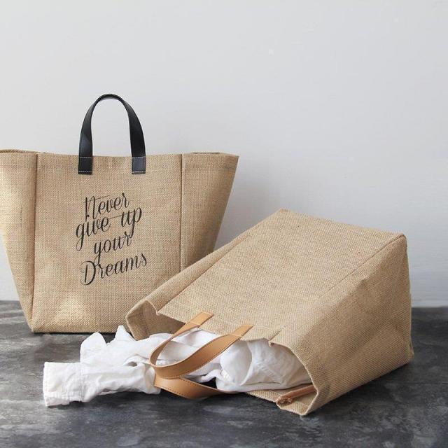 【ポイント5倍!】レディース ジュートバッグ トートバッグ ハンドバッグ アルファベット柄 かごバッグ ファスナー かばん 秋 冬 エコ カジュアル