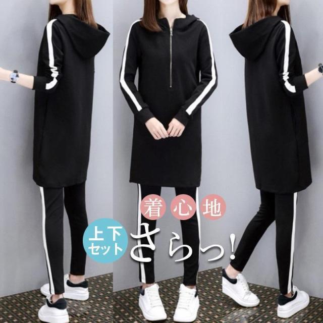 【ポイント5倍!】ジャージ セットアップ レディース 上下セット スウェット パーカー フード付き セットジャージ スキニー パンツ 大きいサイズ 夏服 細身 無地