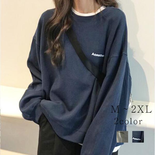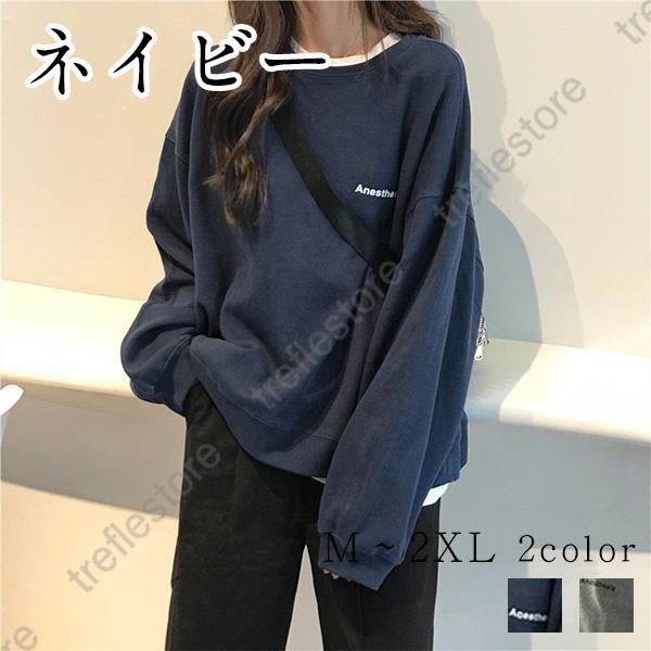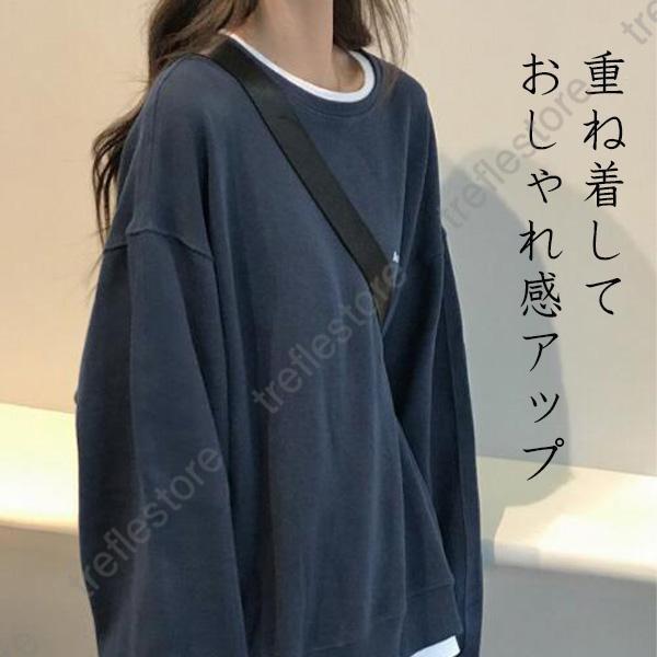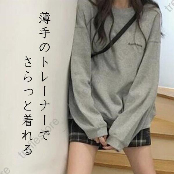 【ポイント5倍!】スウェット トレーナー 長袖 トップス 薄手 レディース 重ね着 カジュアル ロゴプリント ゆったり 40代 50代 韓国