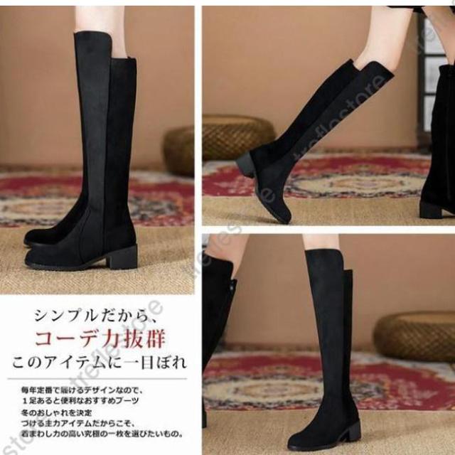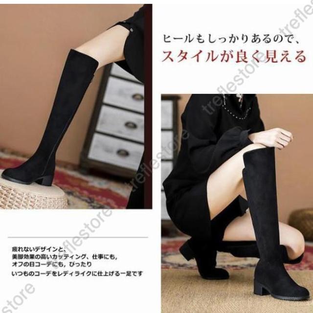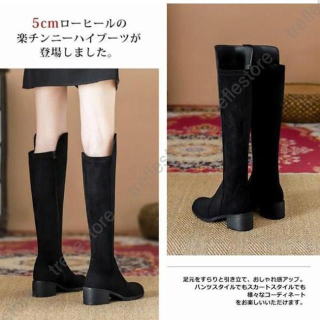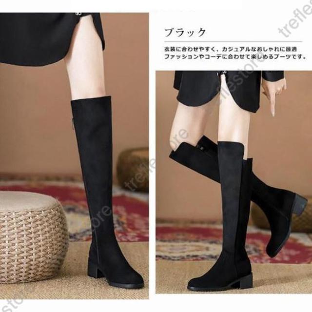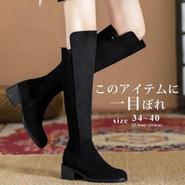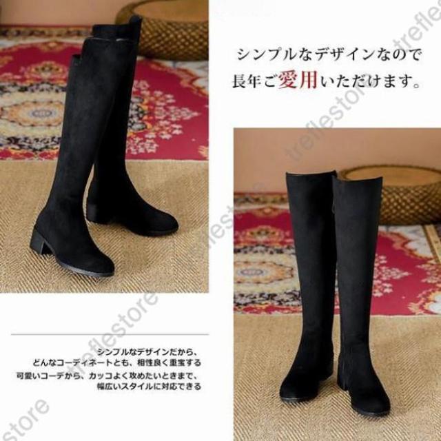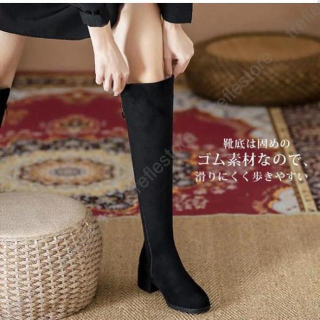 【ポイント5倍!】ニーハイブーツ レディース ロングブーツ ラウンドトゥ 太めヒール スエード調 ブーツ ロング ニーハイ PU 合成革 シンプル 無地 おしゃれ きれいめ 美脚 黒