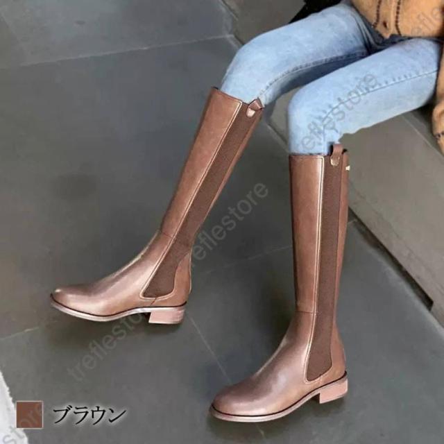 【ポイント5倍!】ロングブーツ レディース 革 歩きやすい 美脚 レザー ローヒール 茶色 長靴 おしゃれ 軽い 幅広 冬 秋 カジュアル 冬靴 軽量 50代 可愛い ブランド 3e 4e お洒落