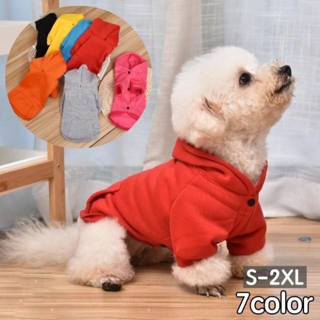 【ポイント5倍!】ペットウェア パーカー 裏起毛 暖かい ドッグウェア キャットウェア 犬服 猫服 洋服 袖あり 前ボタン リード穴付き フード付き 無地 シンプル