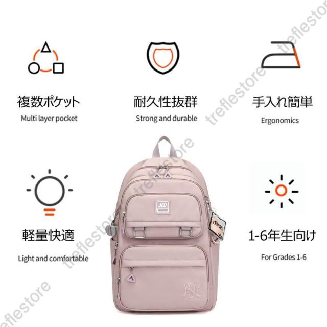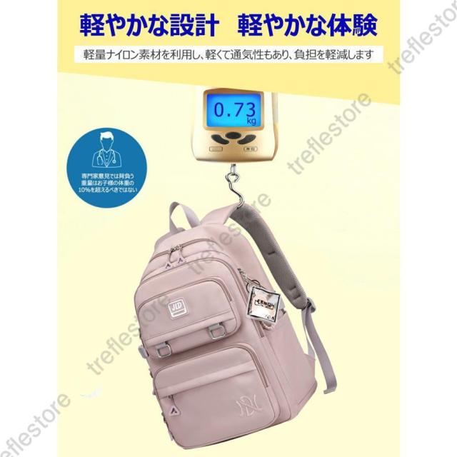 かさばる荷物もこれ一つでラクラク持ち運べる大容量リュックが登場!成長期の肩への負担を軽減する軽量素材を使用し、たったの730gの軽さ。爽やかなパステルカラー&ブラックでキュート&スタイリッシュなデザイン。刺繍やワッペン、サイドアクセサリーなどお洒落なディテールも充実しています。キュートな見た目だけでなく機能面も充実しており、内側にも外側にも散らばりやすい小物が収納しやすいポケットが付いています。お片付けの練習にも最適!