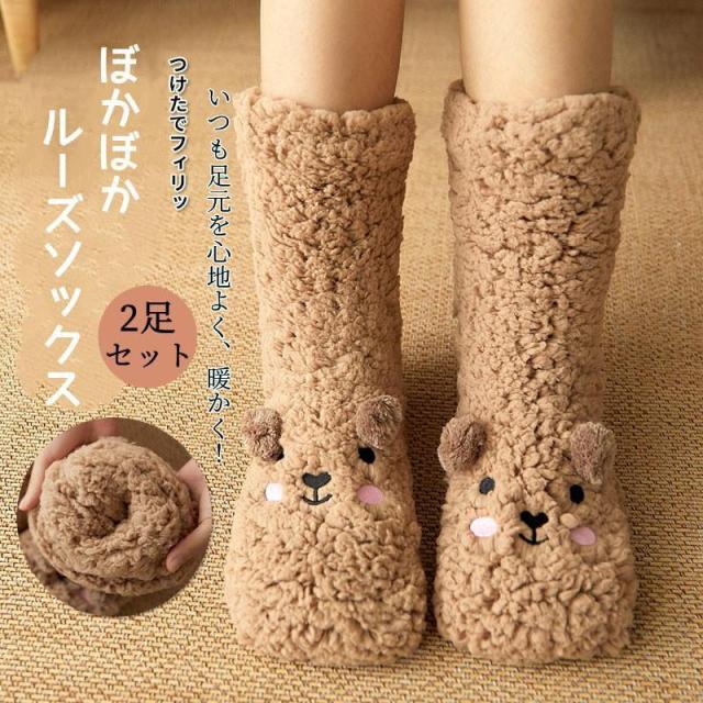 【ポイント5倍!】ルームソックス 在宅勤務に最適 2足セット 安い モコモコ 靴下 裏ボア レディース メンズ 子供 室内履き ショート 厚手 カジュアル プレゼント