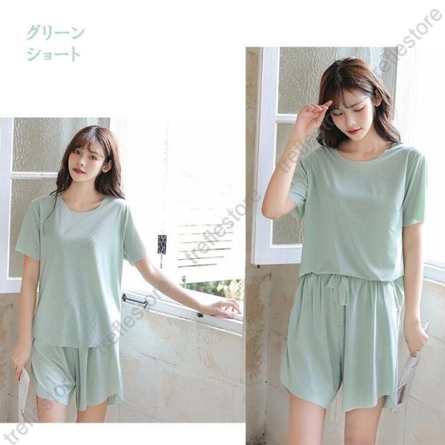 【ポイント5倍!】レディース ルームウェア 夏 上下 セットアップ 接触冷感 冷感 パジャマ 半袖 長ズボン ショートパンツ ロングパンツ 大きいサイズ 可愛い ゆったり サラサラ