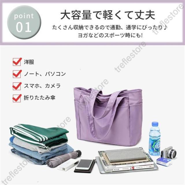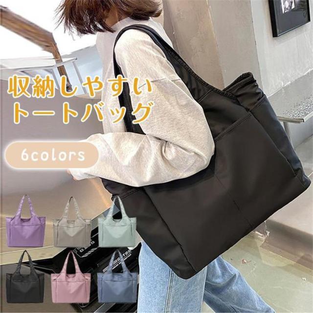 トートバッグ レディース メンズ かばん バッグ 大きめ ナイロン 大容量 ポケット多い 無地 軽量 通勤 通学 肩掛け ジム