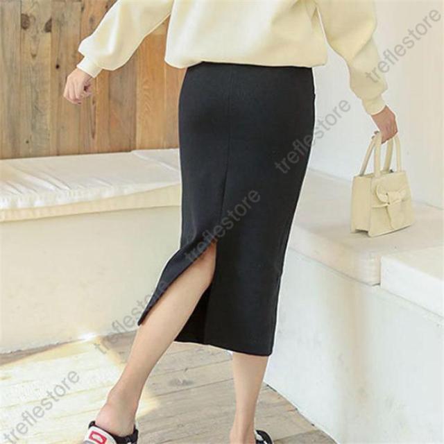 スカート ロングスカート タイトスカート リブ ロング レディース スカート リブスカート スリット 無地 20代 30代 40代 50代 シンプル ウエストゴム