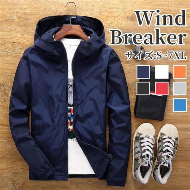 【ポイント5倍!】ウィンドブレーカー メンズ アウター ジャケット パーカー 無地 春秋 軽量 羽織