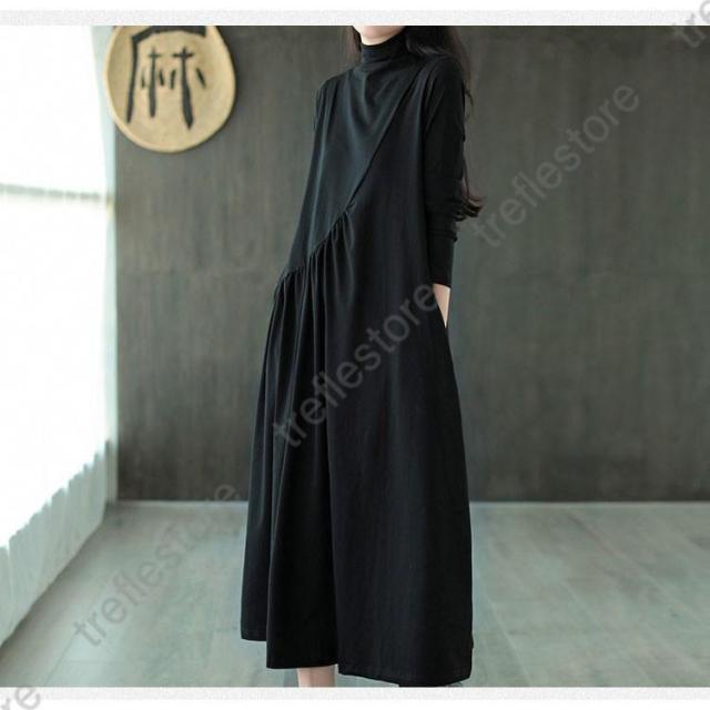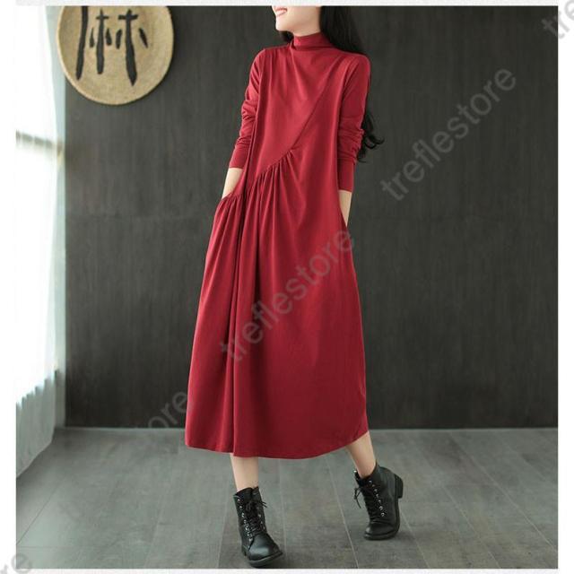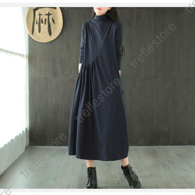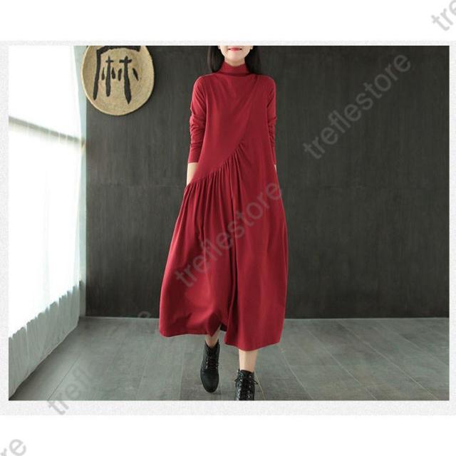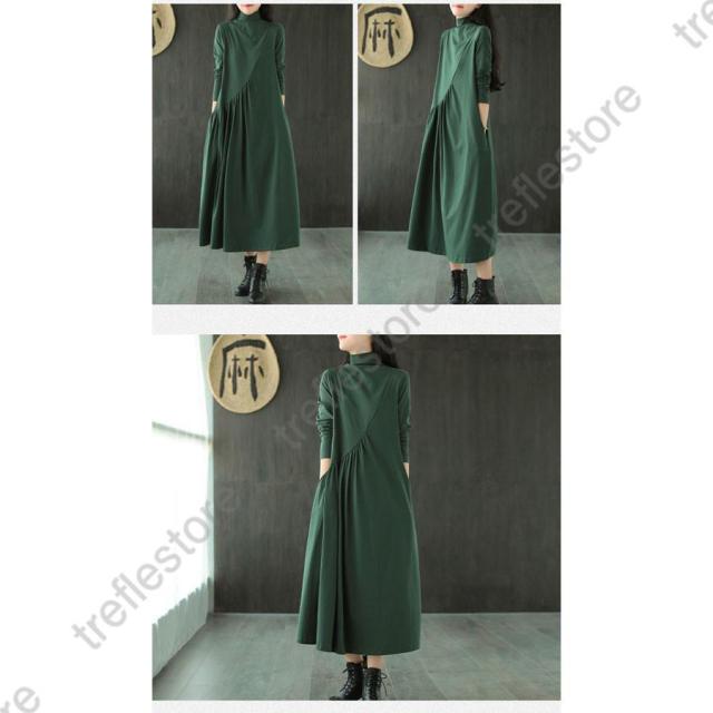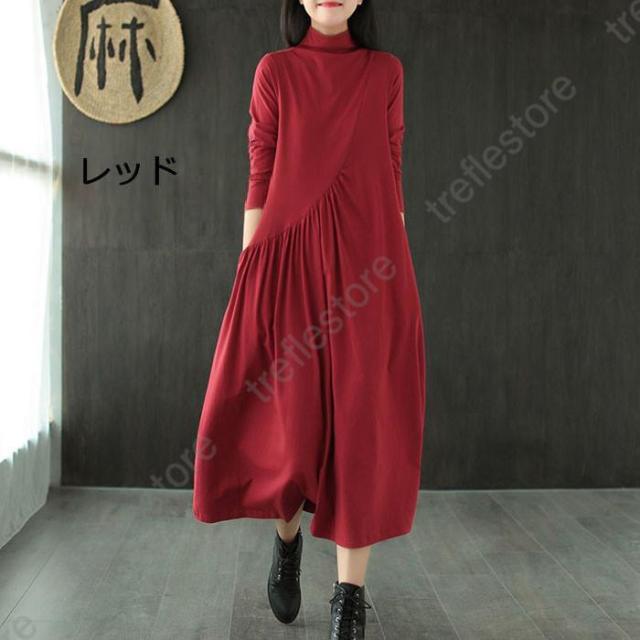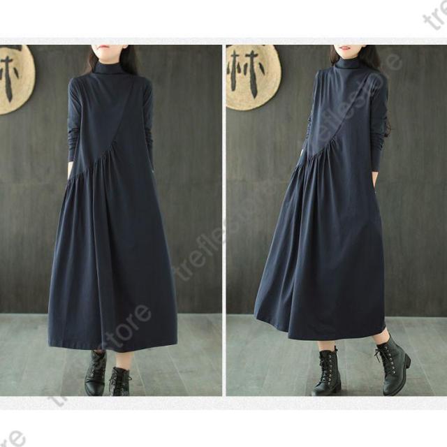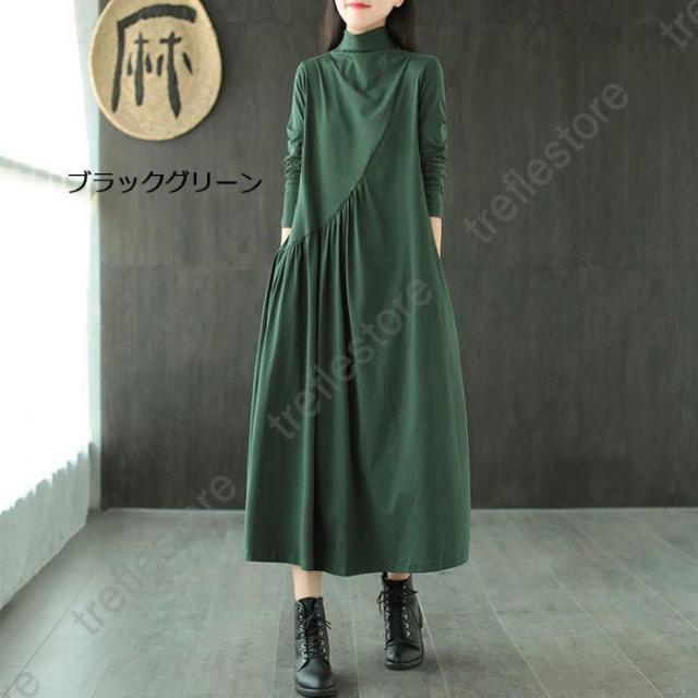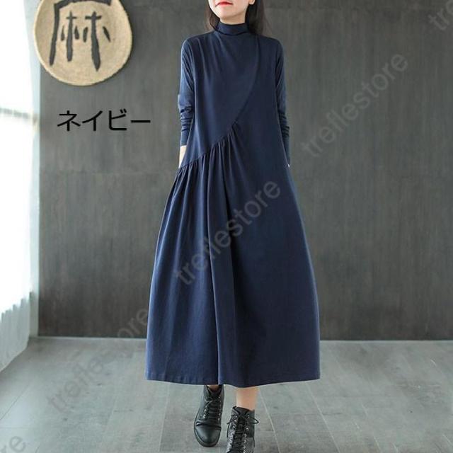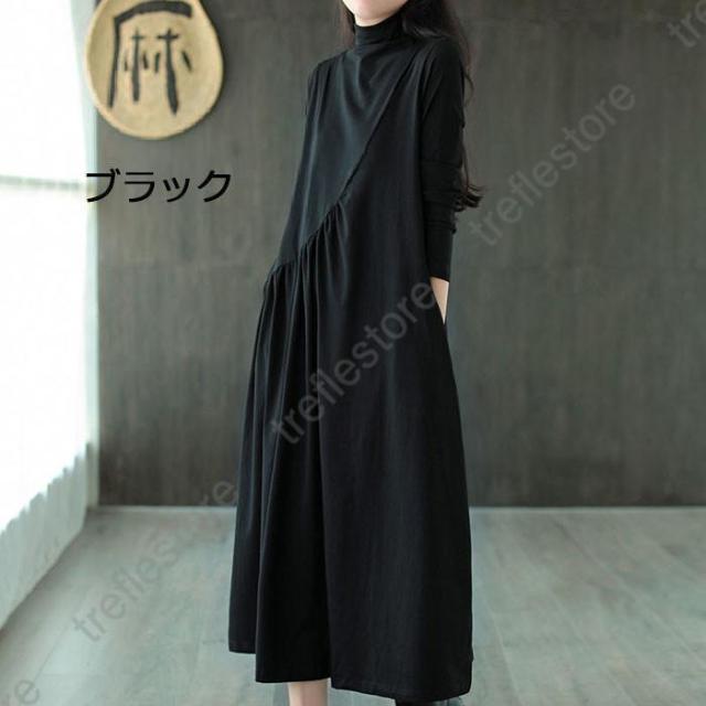 【ポイント5倍!】ワンピース レディース 秋物 長袖 カジュアル ロング Aライン マキシ丈 インナーワンピース ドレス 無地 ゆったり 着痩せ オシャレ チュニック