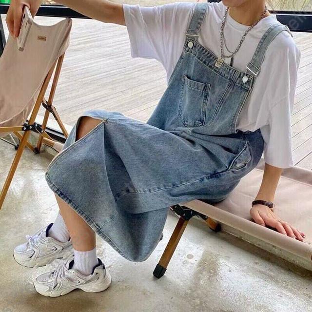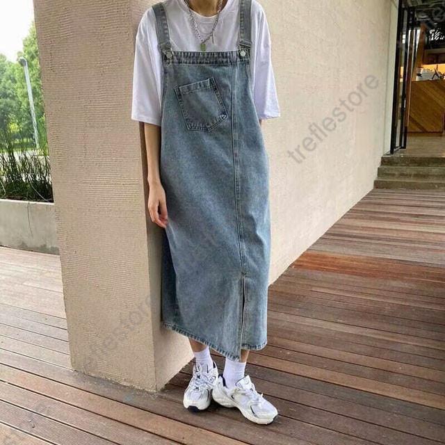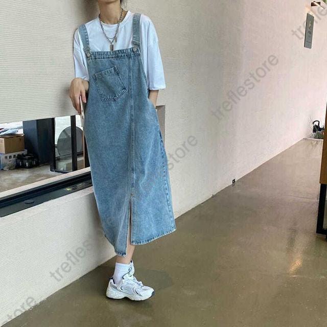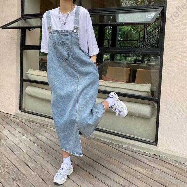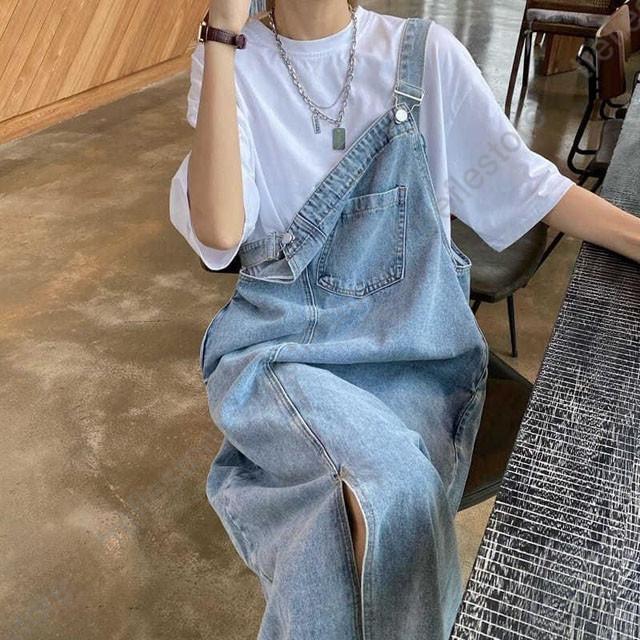 【ポイント5倍!】ジャンパースカート デニム ワンピース スリット サロペット スカート 春 夏秋 デニムジャンパースカート デニムサロペット デニムワンピース