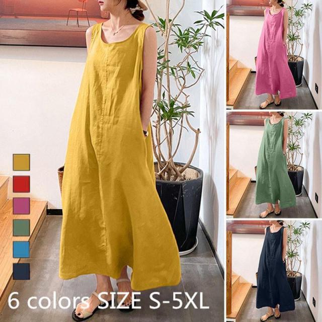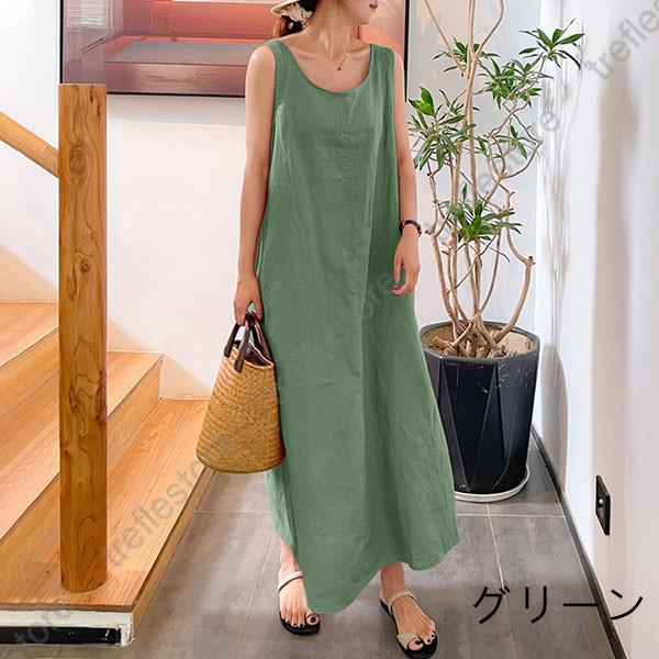 【ポイント5倍!】綿麻ワンピース タンクワンピース ロングワンピース マキシワンピース Uネック Aライン キャミソール リネン 大きいサイズ展開 ポケット ゆったり 40代50代60代