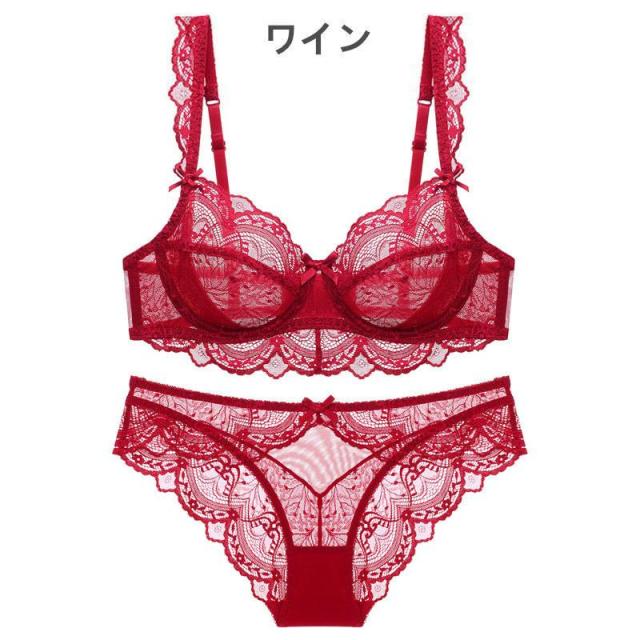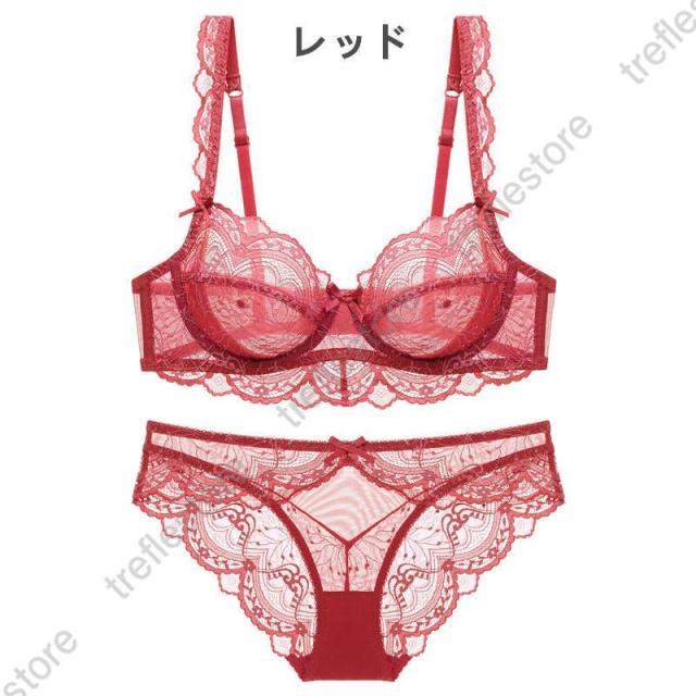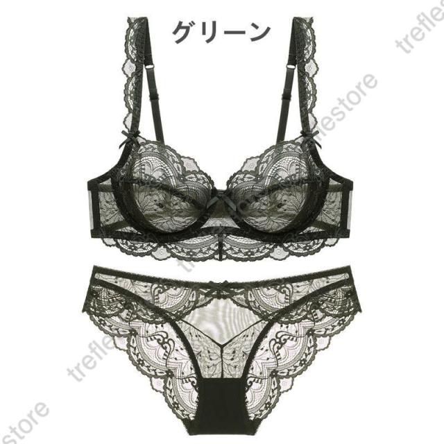 ◆ショーツセット レディース ブラジャー ノンパッド シースルー ブラジャー レース 下着 透け感 セクシーランジェリー 上下セット ブラジャーパンツセット 超薄型 3/4カップ 固定ショルダーストラップ リア複列バックル ポリプロピレン 薄い ノンスポンジ 透明 レースブラ レディース ブラセット セクシー下着 春夏秋冬
