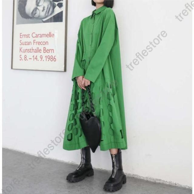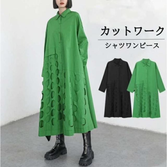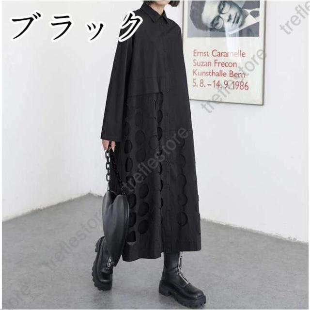 注目キーワード ワンピース ロングワンピース カットワークシャツワンピース レディース 秋冬 シャツワンピース きれいめ モード系 羽織り 長袖 シャツ 襟付き トップス カットワーク アシンメトリー ロング丈 変形デザイン シャツワンピ 大きいサイズ 体型カバー 韓国 通勤 オフィス 入園式 卒業式