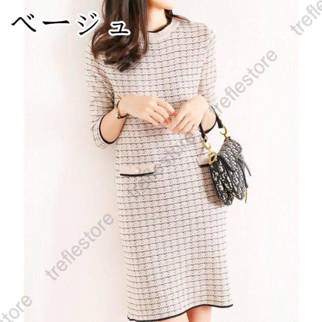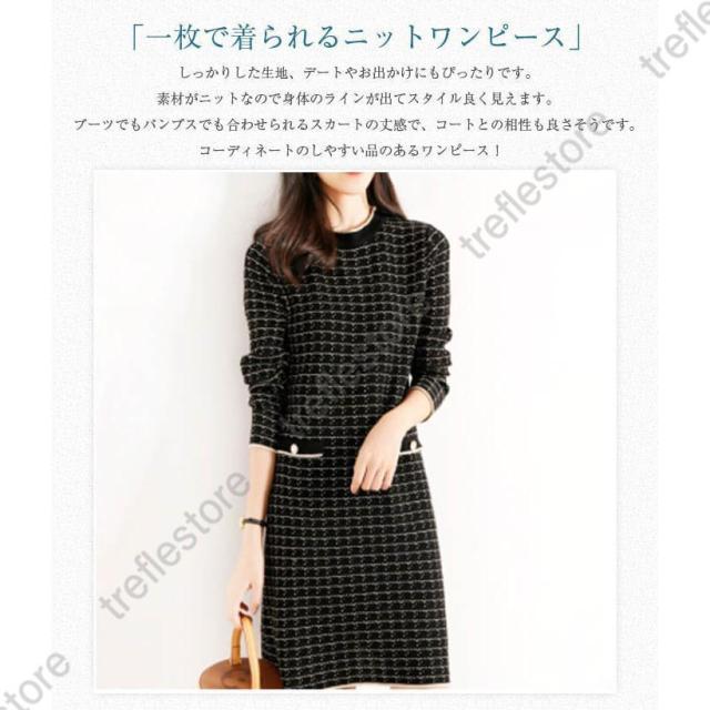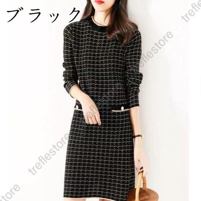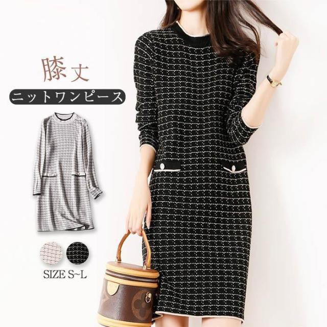 【ポイント5倍!】ニットワンピース ワンピース レディース 秋冬 膝丈 ロング 厚手 きれいめ チェック 上品 ワンピース 大人 お出かけ 30代 40代 50代 通勤 着痩せ