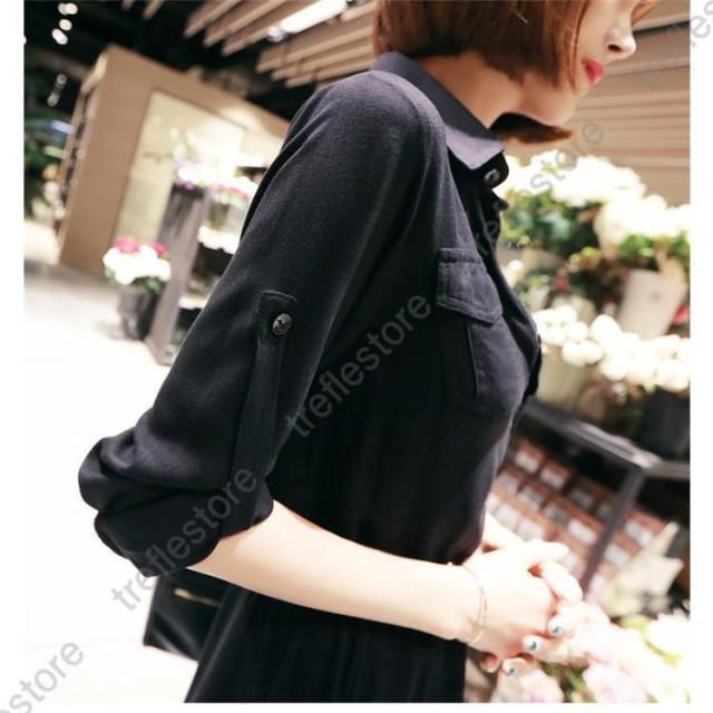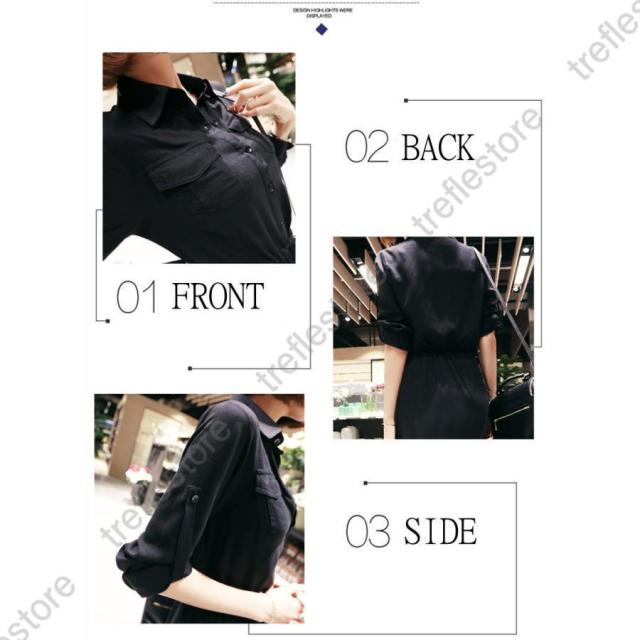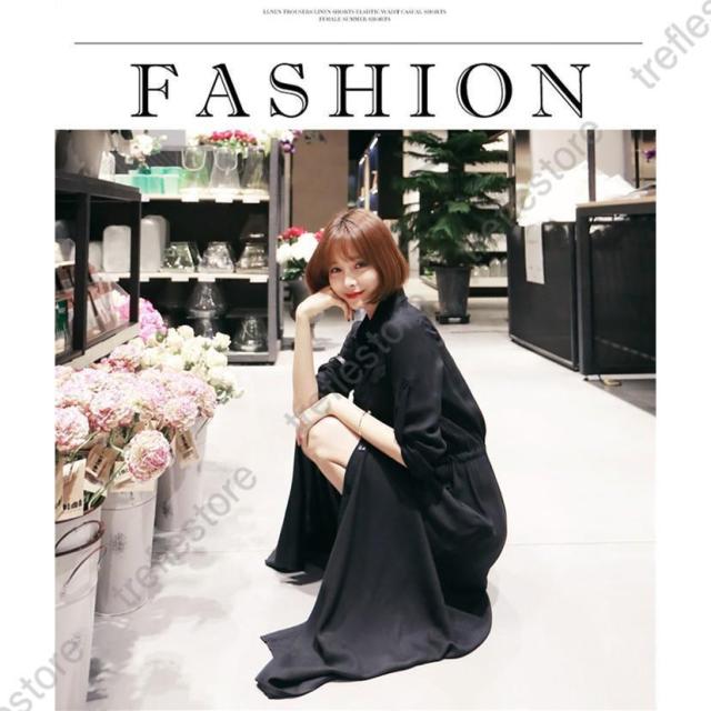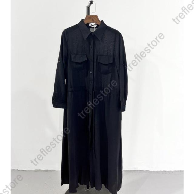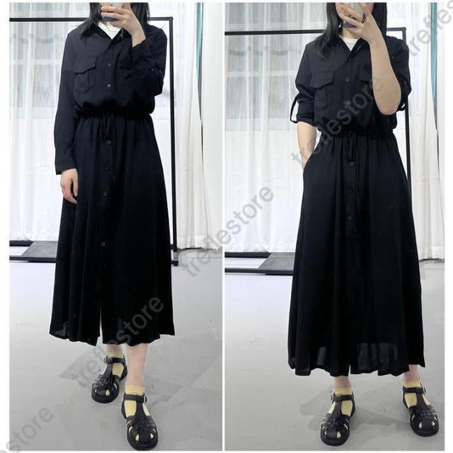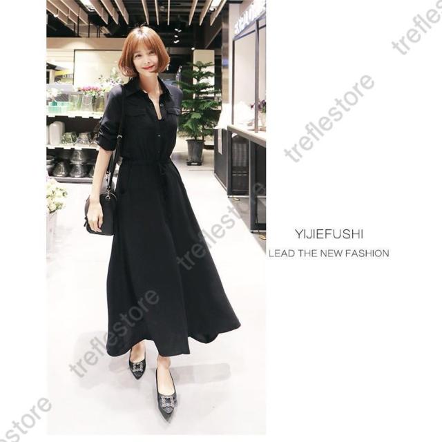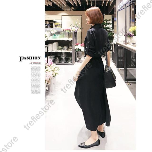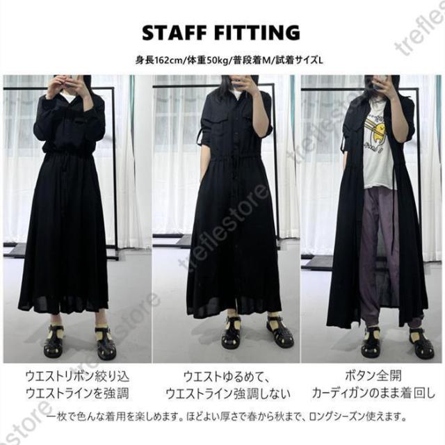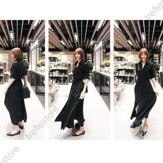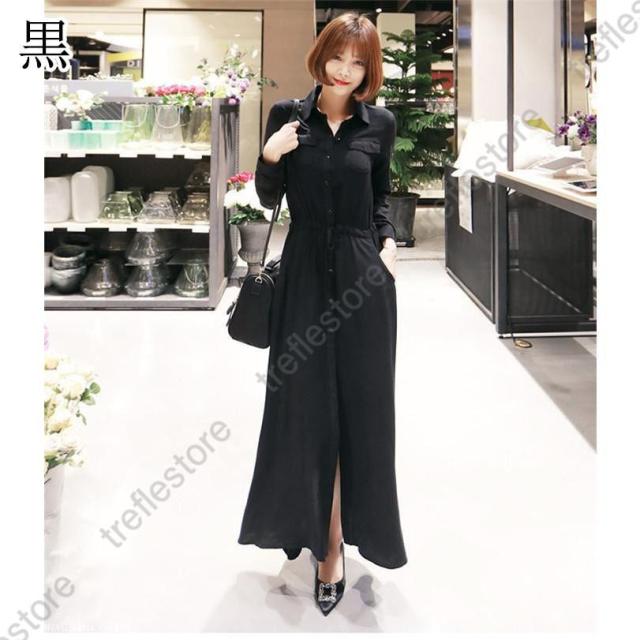 【ポイント5倍!】マキシワンピース レディース 春 シャツワンピース ロング丈 黒 ワンピース 長袖 ロングワンピース リボン付き ゆったり 体型カバー 大人 30代 40代
