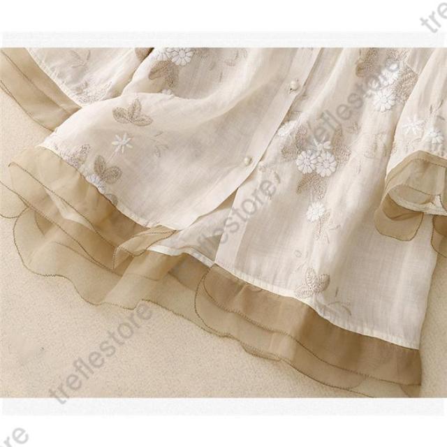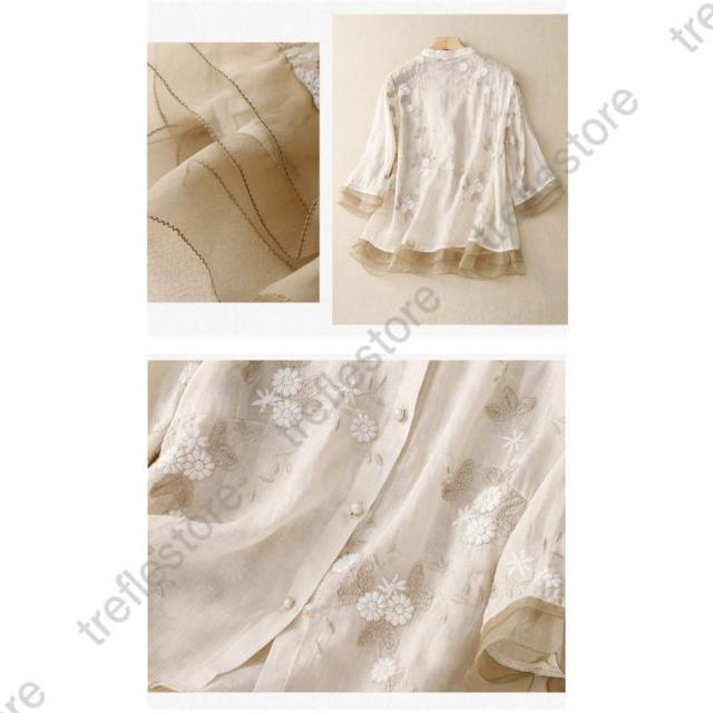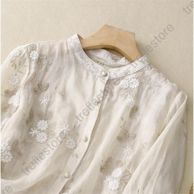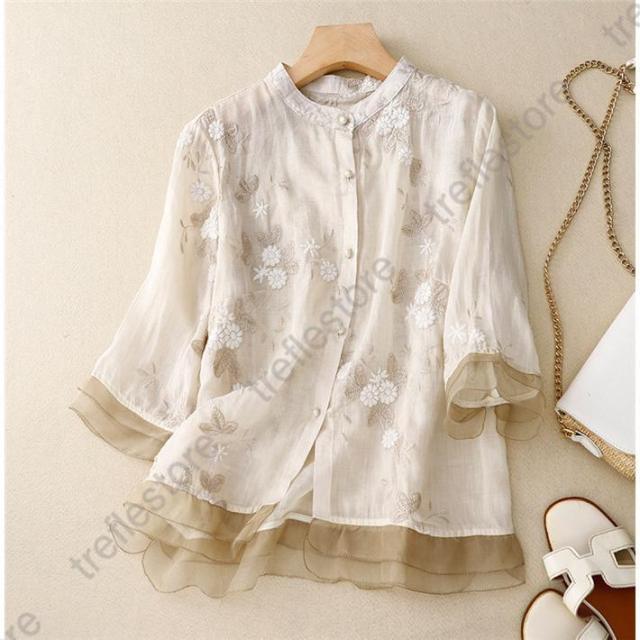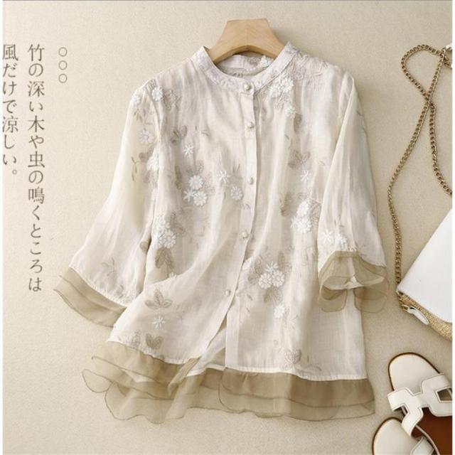 【ポイント5倍!】シャツブラウス レディース 40代 きれい 春夏 ブラウス リネン リネンシャツ トップス 七分袖 リネンブラウス 綿麻 夏 チュニック 麻 着心地 大人 刺繍