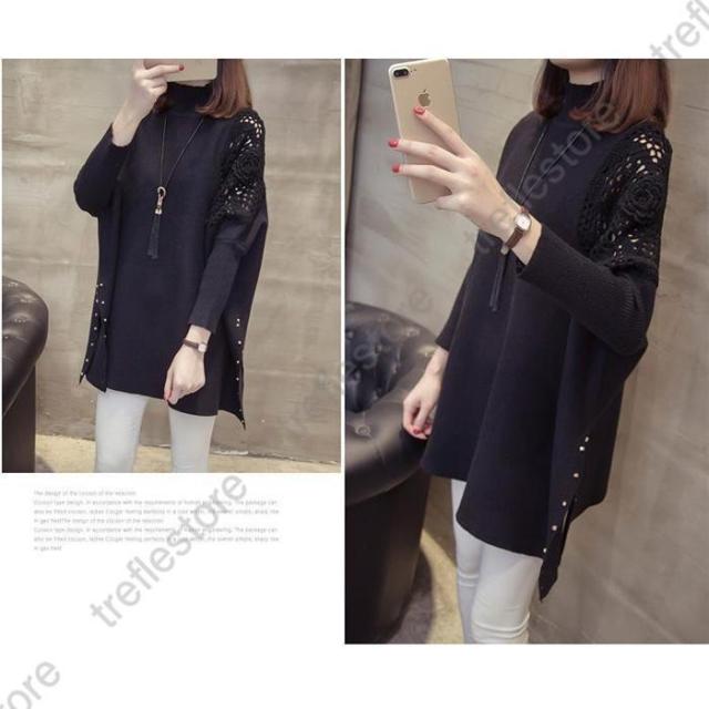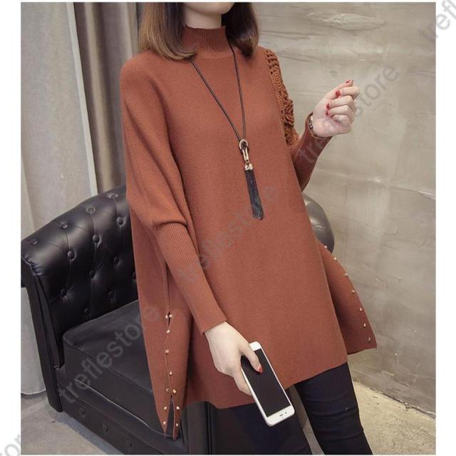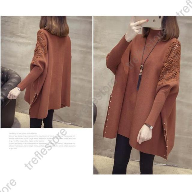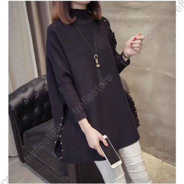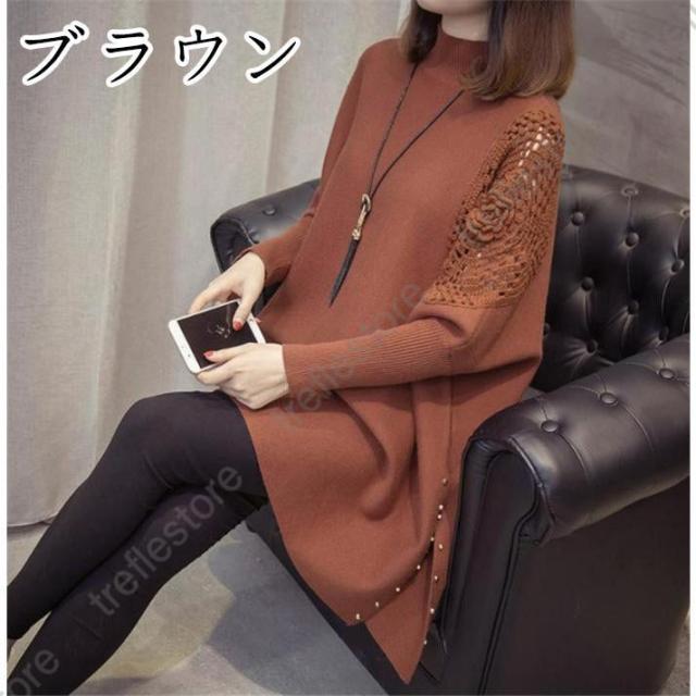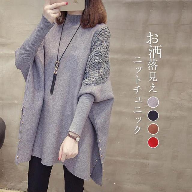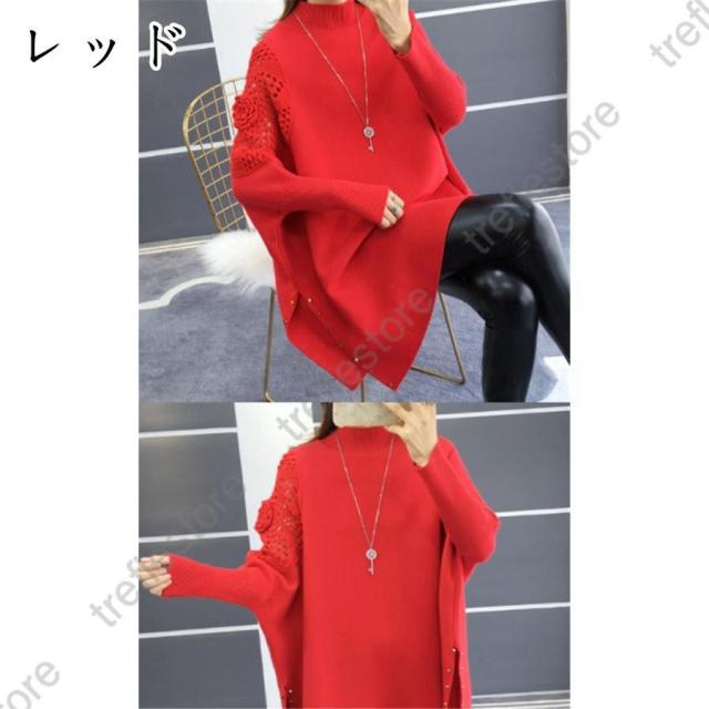 【ポイント5倍!】ニットチュニック セーター レディース 長袖 ニット ロングセーター 秋冬 トップス ドルマンスリーブ ニットソー ゆったり ハイネック 30代 40代 50代 60代