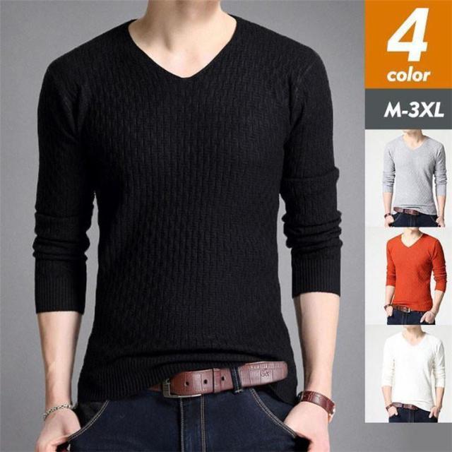 【ポイント5倍!】ニット メンズ セーター Vネック 長袖ニット インナー 大きいサイズ カジュアル 無地 スリム 凹凸感 着痩せ 韓国風 春 秋冬 大人 オシャレ