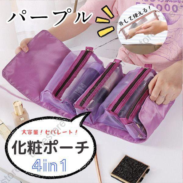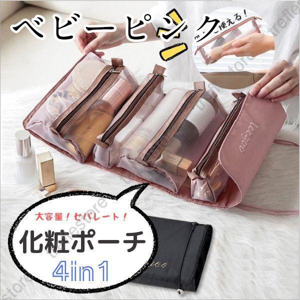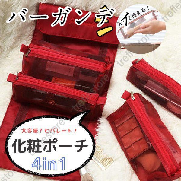 4つのメッシュポーチが一つにコンパクトにまとまる便利な折り畳み式ポーチ。