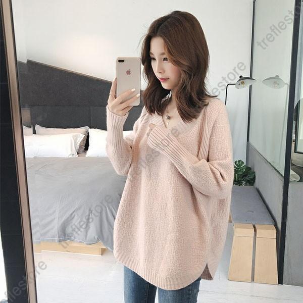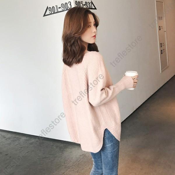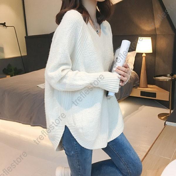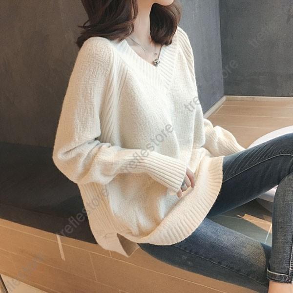 【ポイント5倍!】ニットセーター レディース ロング丈 シンプル トップス チュニック 無地 おしゃれ カジュアル 秋冬 Vネック