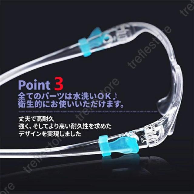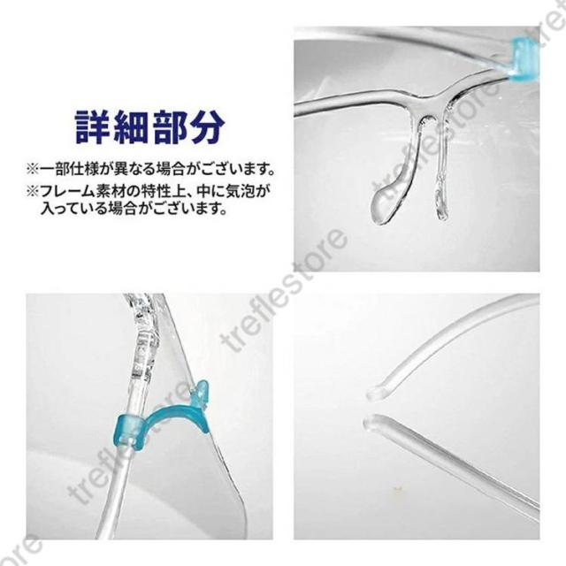 完全に透明なデザイン、クリアな可視レンズ、広い視野。 保護カバー構造は顔全体を保護することができ、設置と操作が非常に簡単で便利です。遮光面と顔の間に程良い空間があるので、近視眼鏡を装着しても邪魔をしない。