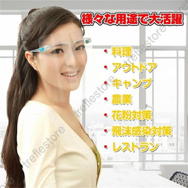 【ポイント5倍!】フェイスシールド メガネ型 10枚セット 防護マスク メガネ型 透明シールド 男女兼用 飛沫防止 ウィルス対策 超軽量 透明シールド マスク