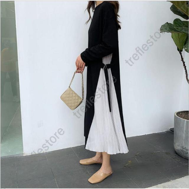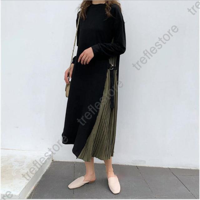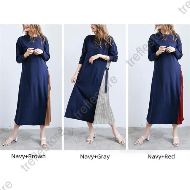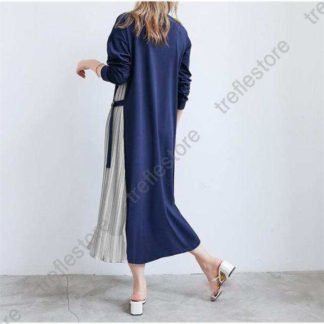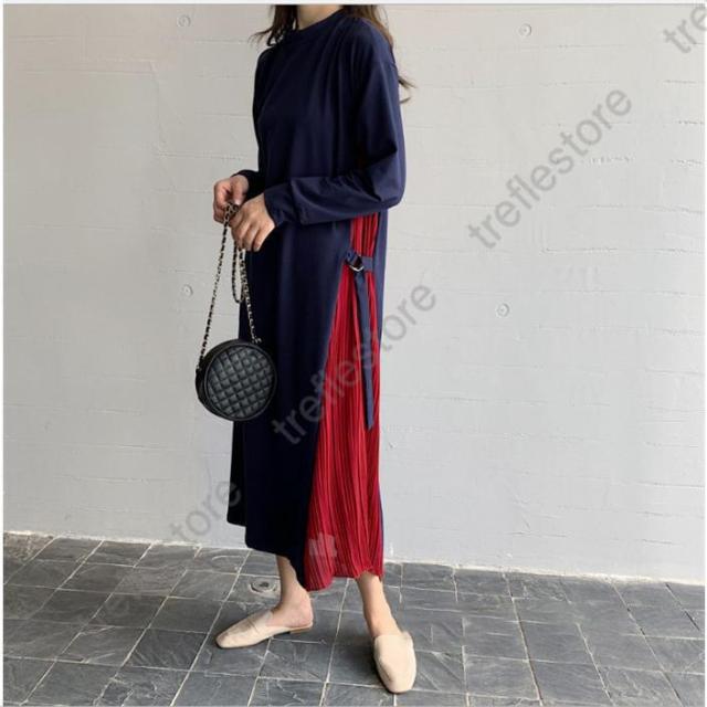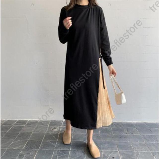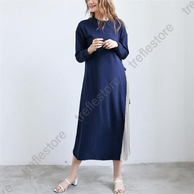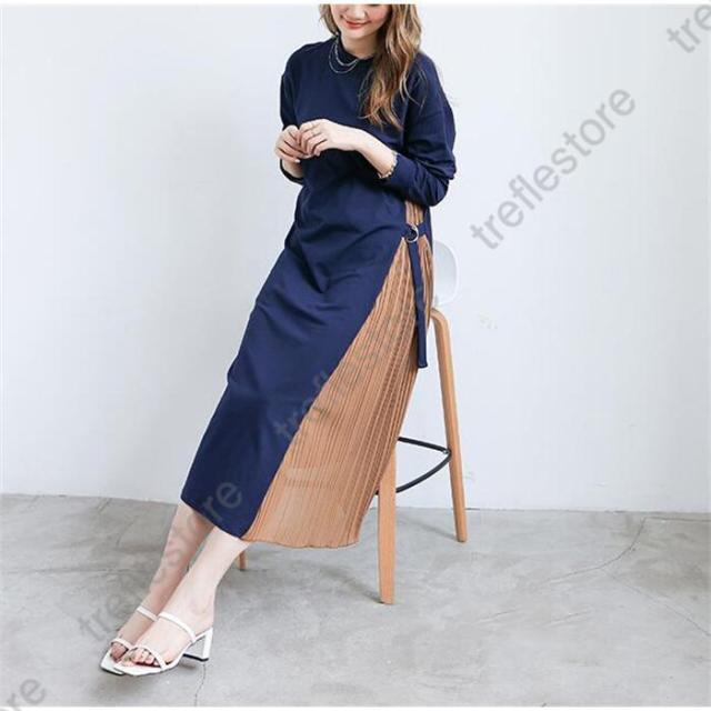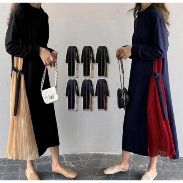 【ポイント5倍!】ワンピース ロング プリーツ 普段使い お出かけ 上品 痩せて 見える 大人可愛い 服 サイドプリーツ 可愛い 女性 大人 体型カバー 長袖 40代