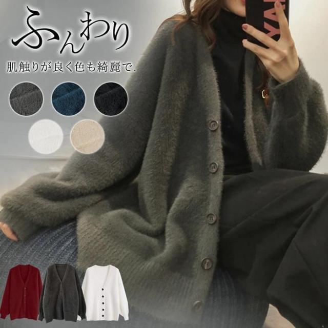 【ポイント5倍!】ふんわり カーディガン トップス ニットカーディガン レディース トップス 長袖 厚手 ニットカーディガン