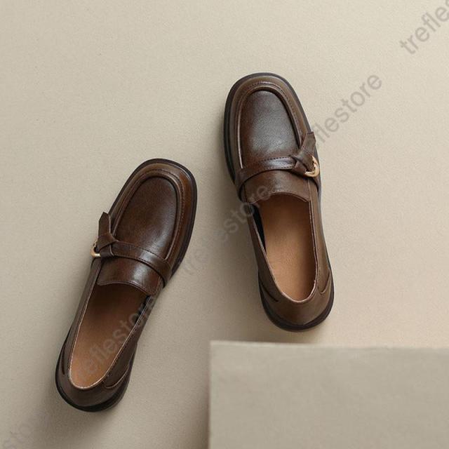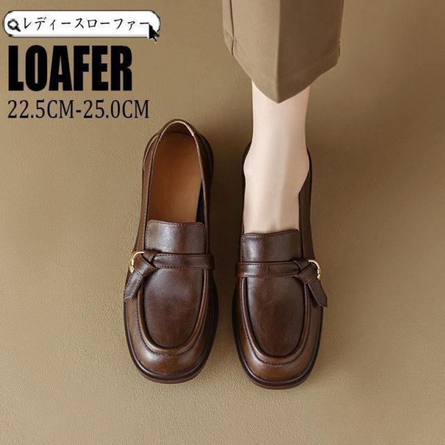 【ポイント5倍!】ローファー レディース 光沢感 厚底 ミドルヒールシューズ ハイヒール シューズ ローヒール靴 ストラップシューズ パンプス 軽量 可愛い 日常着用 通学 通勤