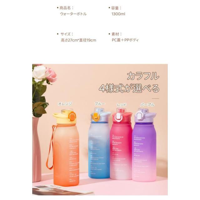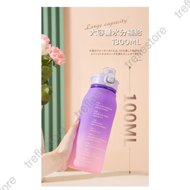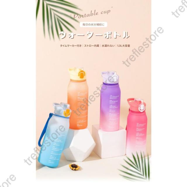 【ポイント5倍!】水筒 ウォーターボトル スポーツボトル 男女兼用 つや消し加工 スケール付き 洗いやすい プラスチック ドリンクボトル 軽量 目盛り おしゃれ 1300ML 漏れない