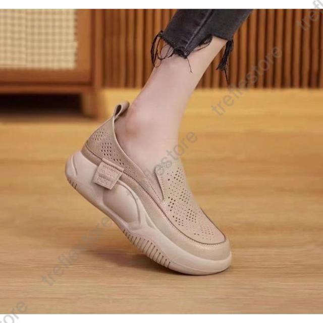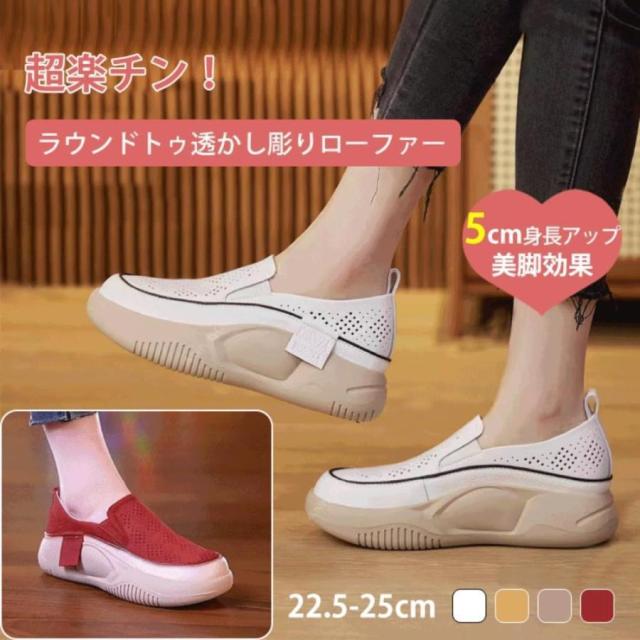 【ポイント5倍!】スリッポン レディース ラウンドトゥ透かし彫りローファー 厚底カジュアルシューズ 5cm 外反拇趾 歩きやすい 人間工学 軽量 滑り止め 美脚効果 通気快適