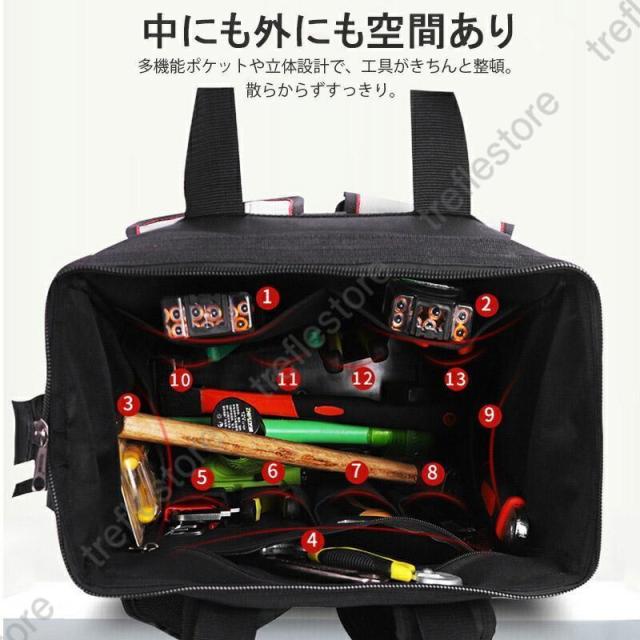 【ポイント5倍!】ツールバッグ リュック 工具バッグ おしゃれ 工具差し 工具入れ リュックサック リュックタイプ 道具リュック 作業用 大容量 電工用 工具袋 作業カバン 防水