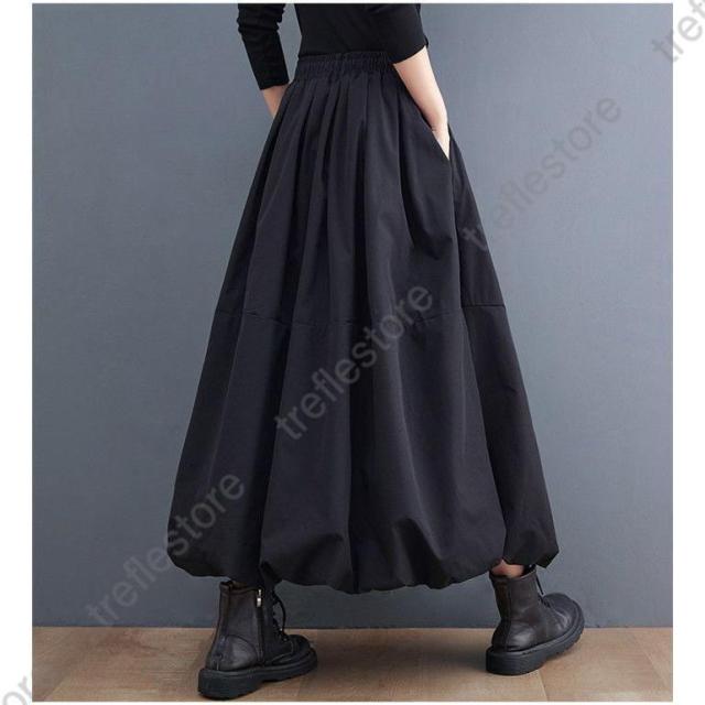 【ポイント5倍!】スカート ロング レディース 黒 大きいサイズ フレアスカート フレア バルーンスカート ボトムス 春 秋 春物 ロングスカート ミモレ丈 シンプル きれいめ 大人