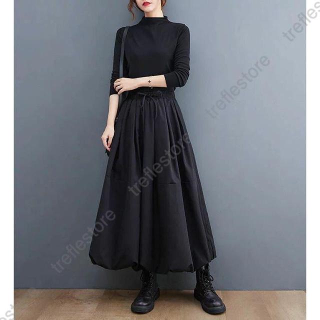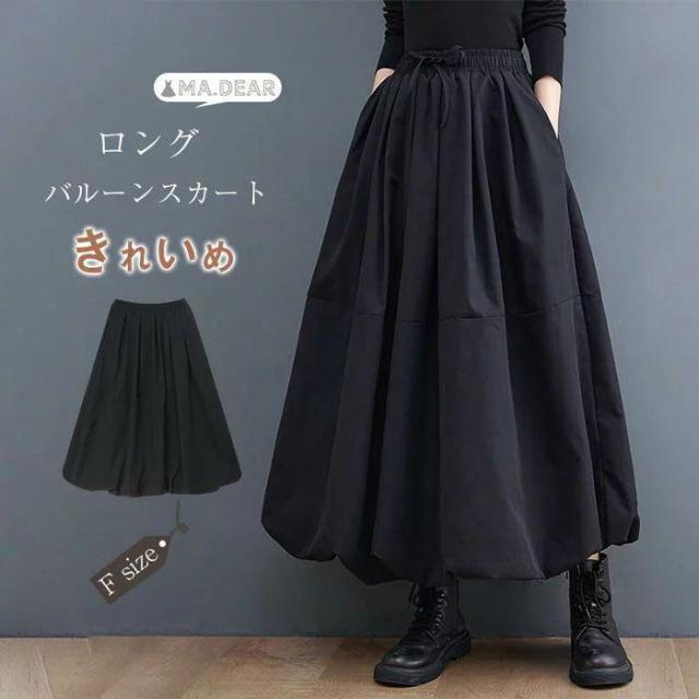 【ポイント5倍!】スカート ロング 春 きれいめ バルーンスカート ロング 黒 レディース 大人 バルーン スカート ロング スカート ランタン スカート ウエストゴム 大人 ボトムス