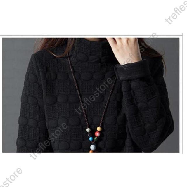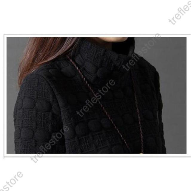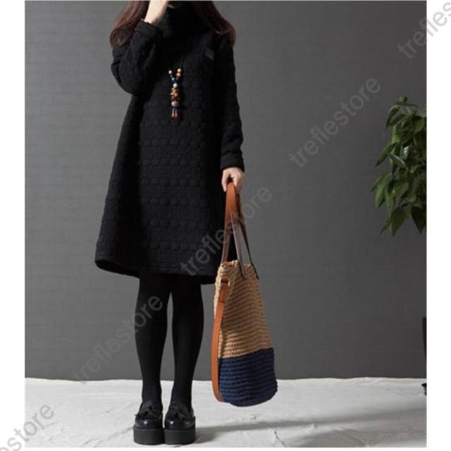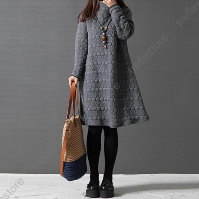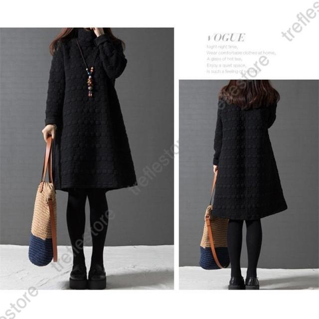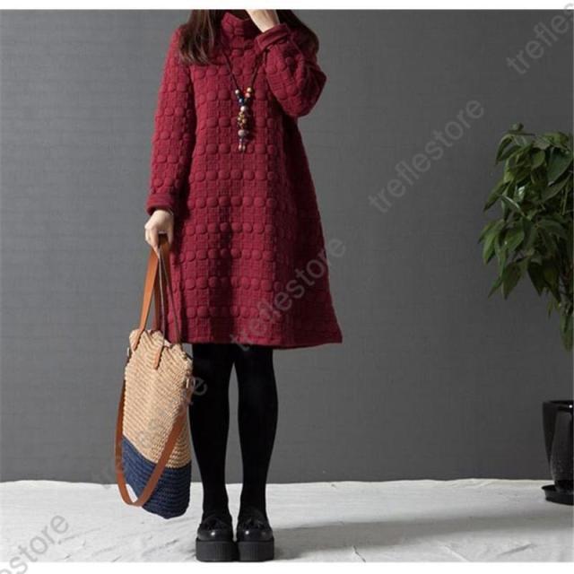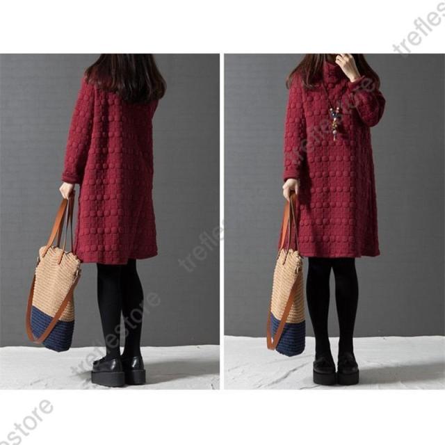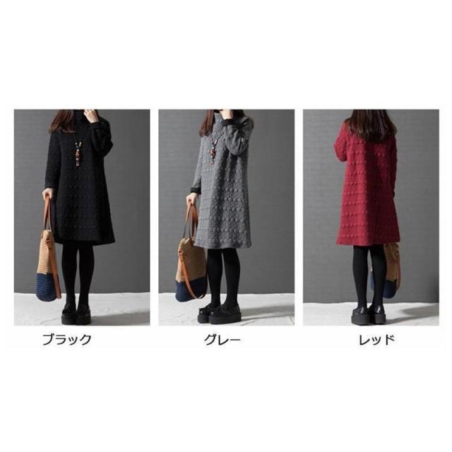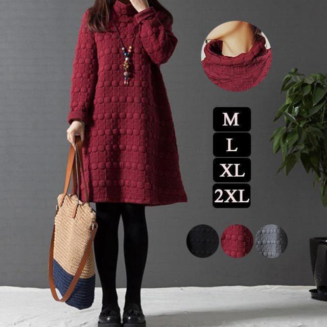【ポイント5倍!】ワンピース レディース チュニック ハイネック 無地 40代 チュニック 冬 防寒 Aライン 長袖 ハイネック 体型カバー 膝丈 ひざ丈ワンピース 赤 黒 灰 ゆったり