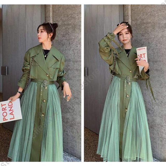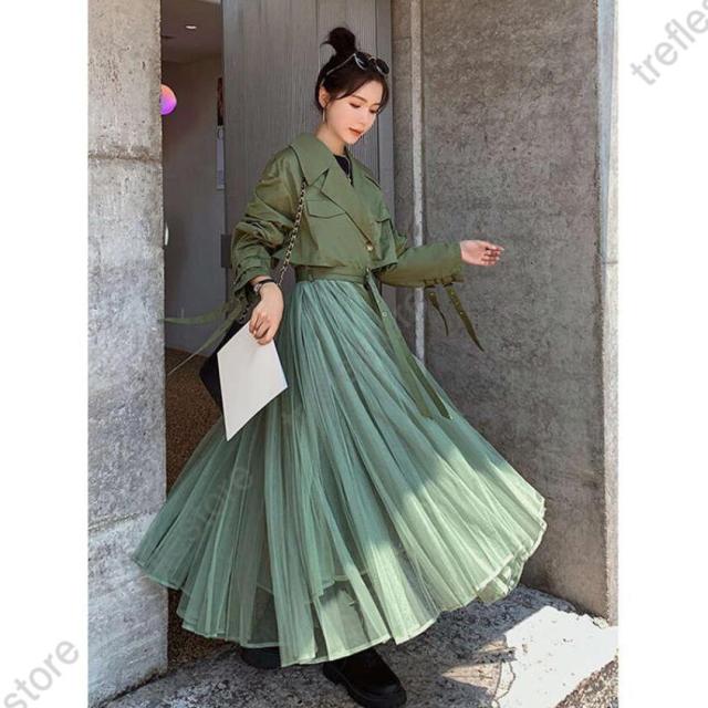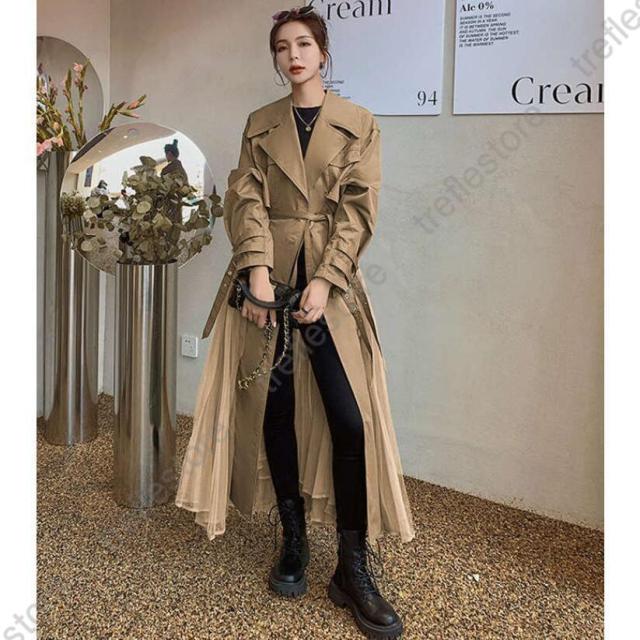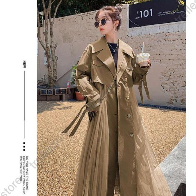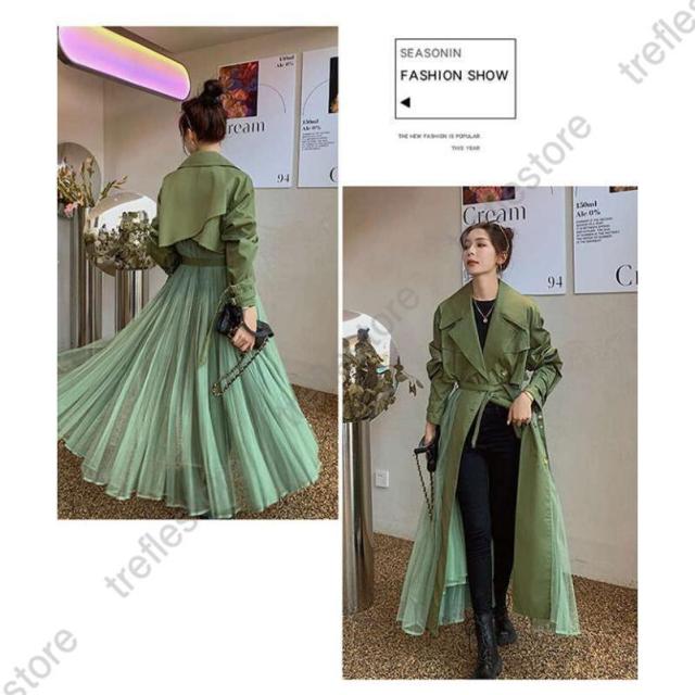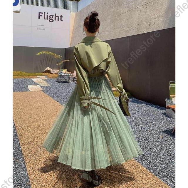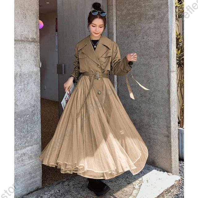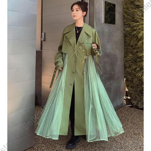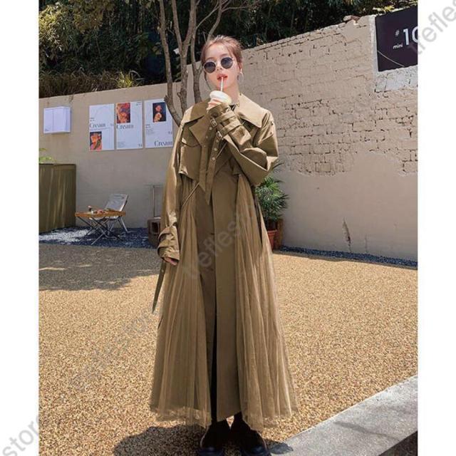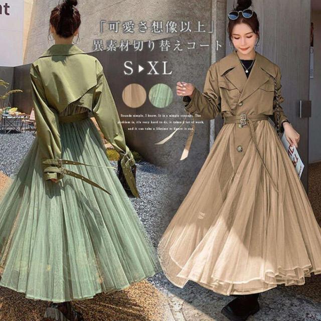【ポイント5倍!】トレンチコート レディース スプリングコート 春 秋 フレア裾 バックチュール 春コート 大人可愛い ロングコート 春秋 アウター ロング丈